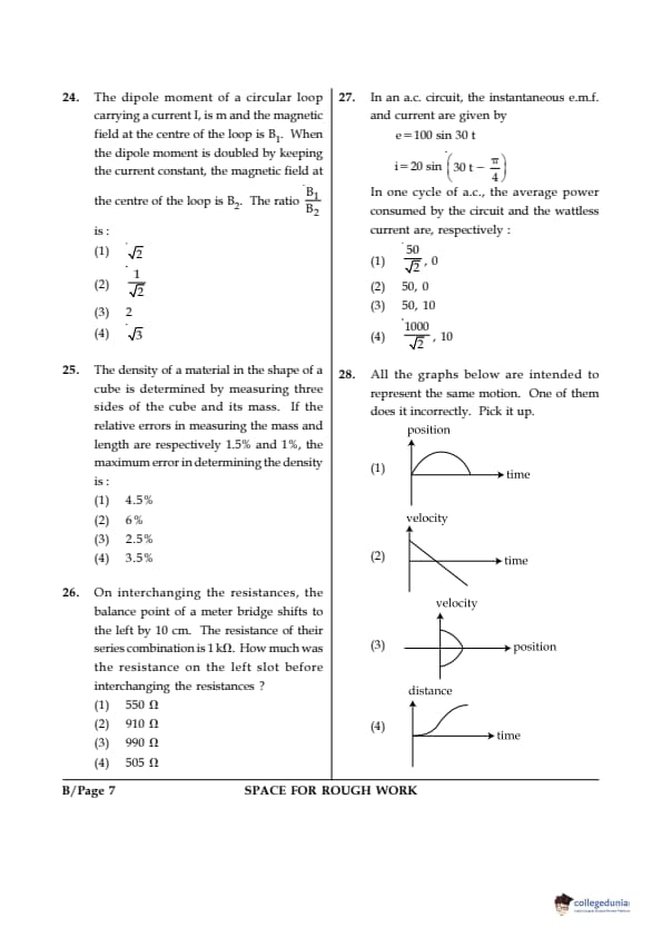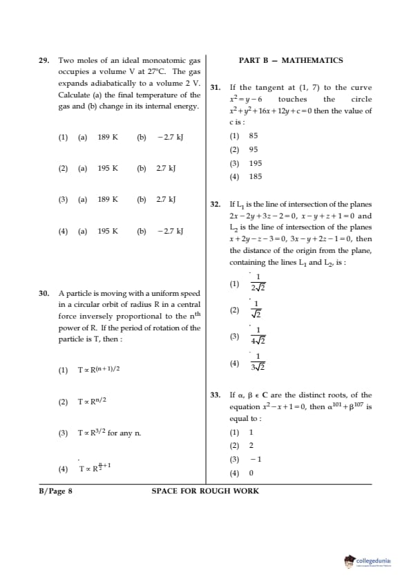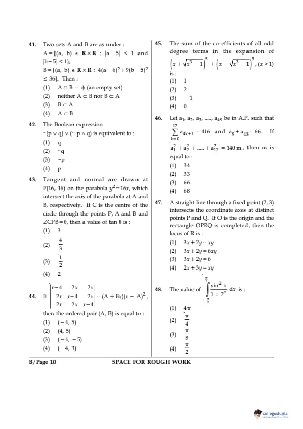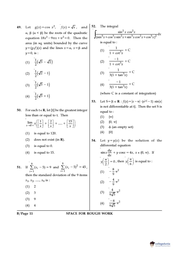 JEE Main 2018 B.E./B.Tech Question Paper with Answer Key PDF(Code B)