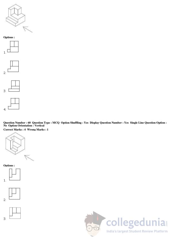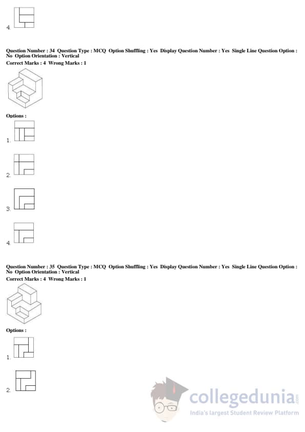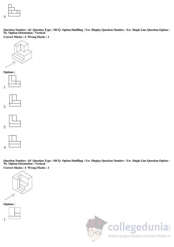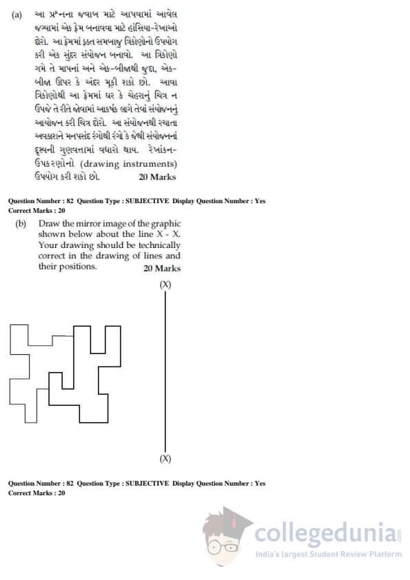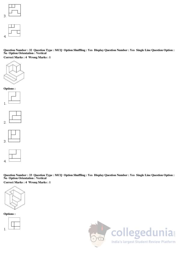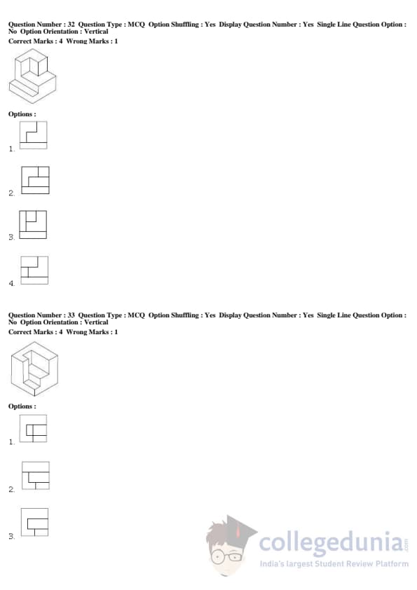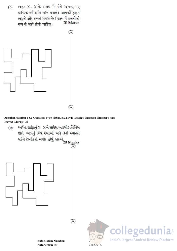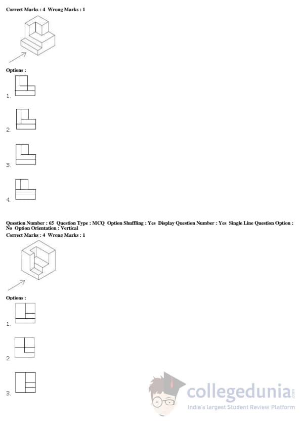 Out of 83 questions, 3 questions were contributed by the Drawings section, carrying 70 marks out of 390 marks. Have a look at the below-mentioned table to get the details of the questions appeared in the Drawings section-
