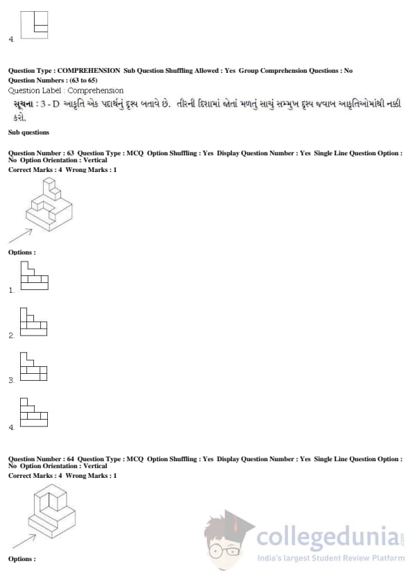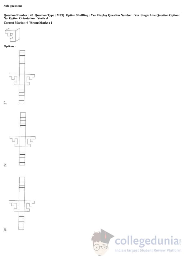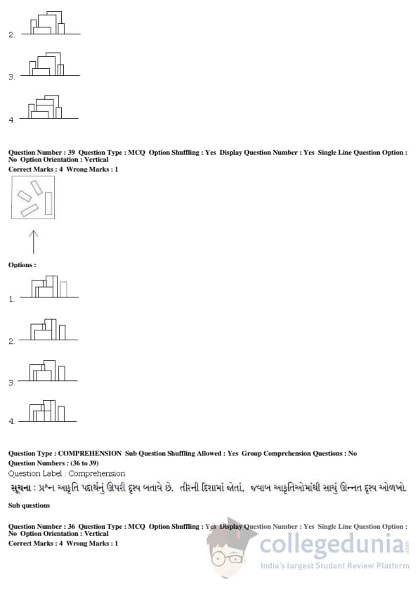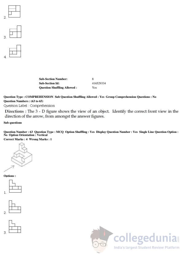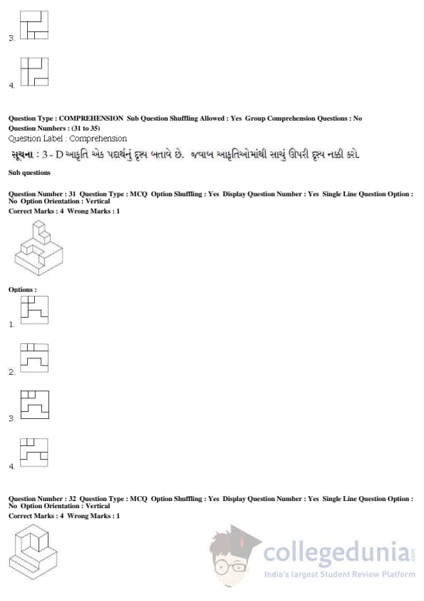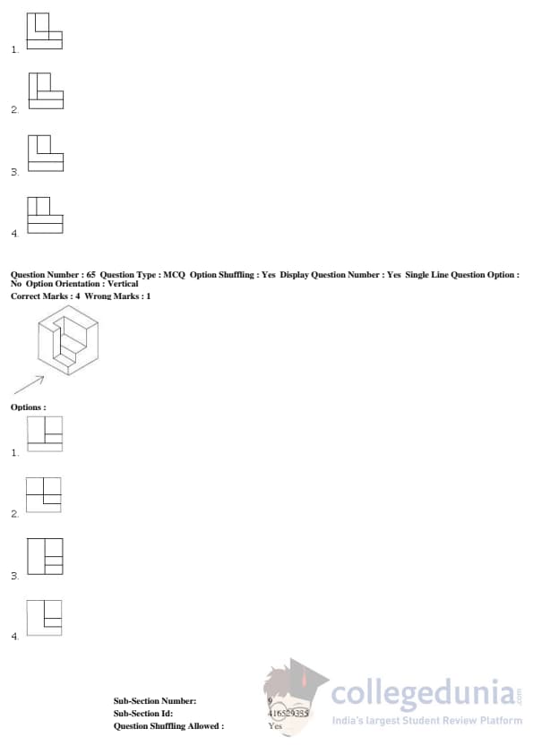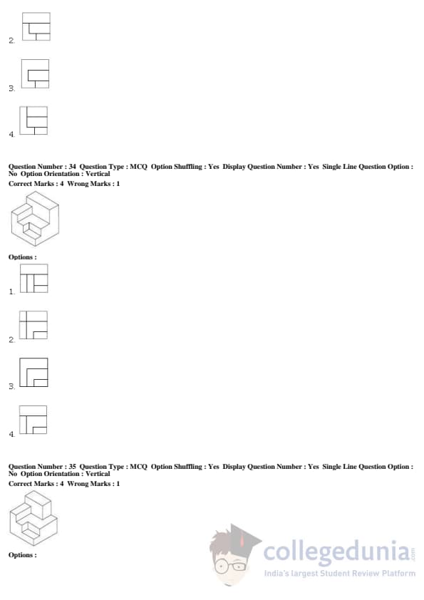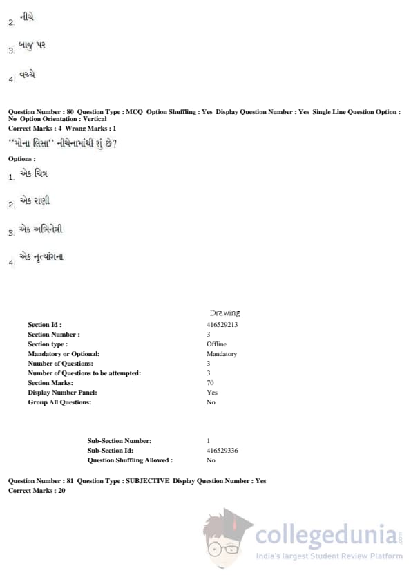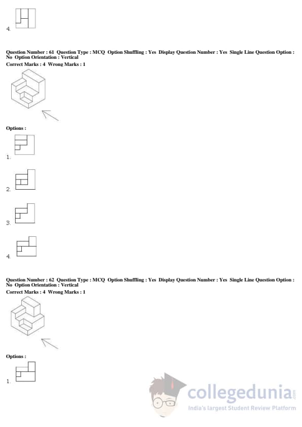 Out of 83 questions, 3 questions were contributed by the Drawings section, carrying 70 marks out of 390 marks. Have a look at the below-mentioned table to get the details of the questions appeared in the Drawings section-
