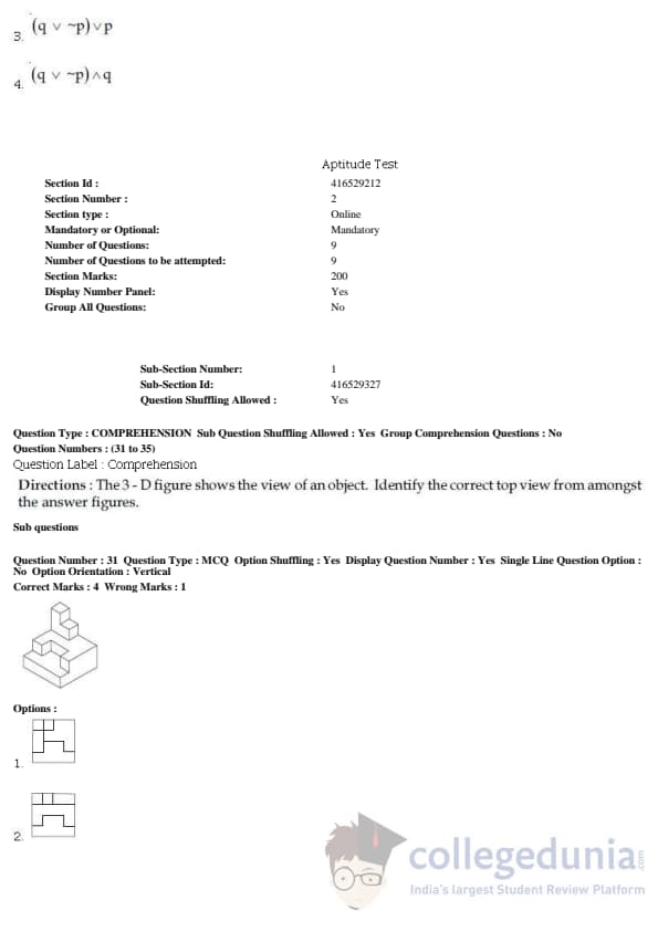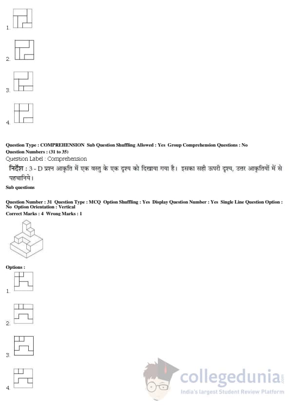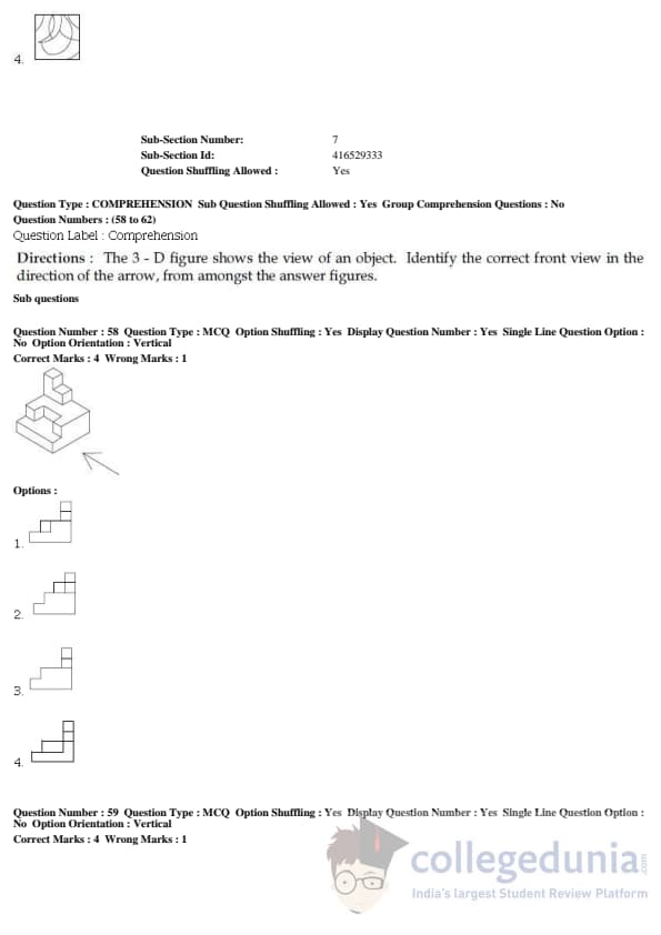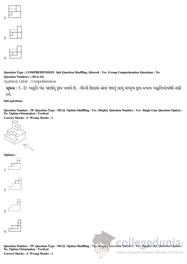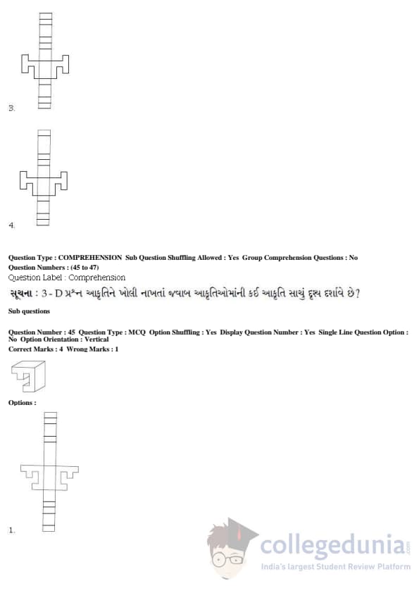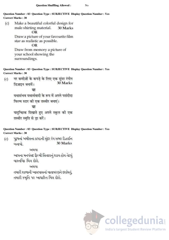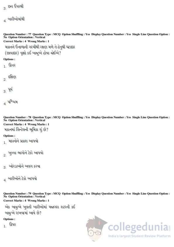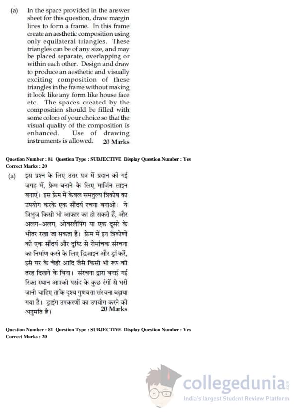 Out of 83 questions, 3 questions were contributed by the Drawings section, carrying 70 marks out of 390 marks. Have a look at the below-mentioned table to get the details of the questions appeared in the Drawings section-