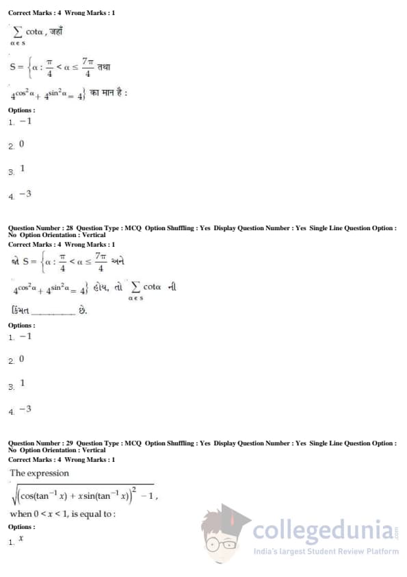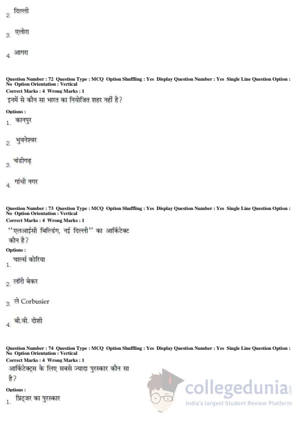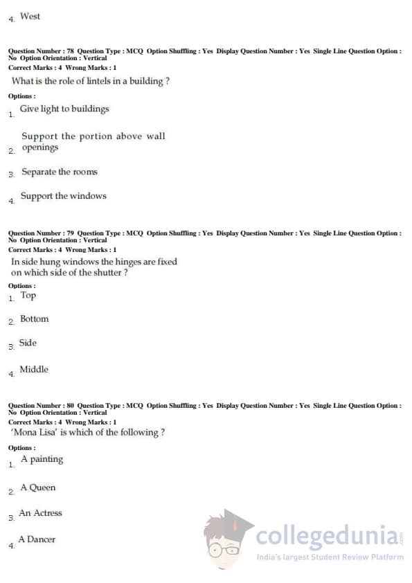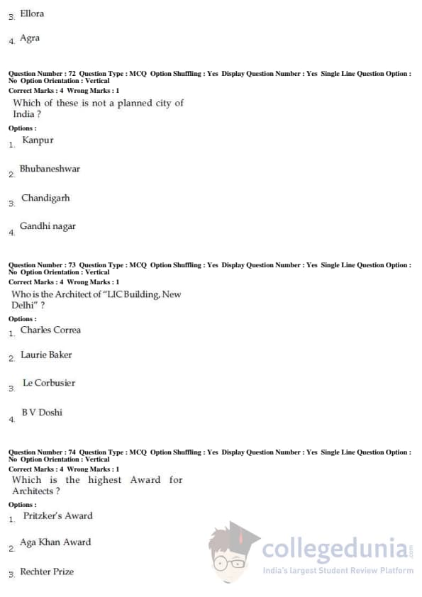 JEE Main 2019 B.Arch Question Paper- (January 8, 2019- Afternoon Session)