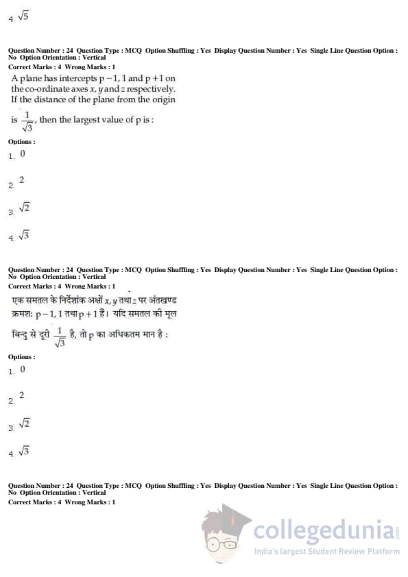 JEE Main B.E./B.Tech Question Paper with Answer Key PDFs