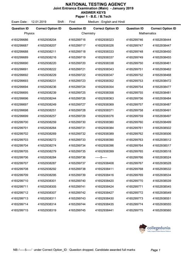 | JEE Main 2019 Question Paper | JEE Main 2019 Answer Key |