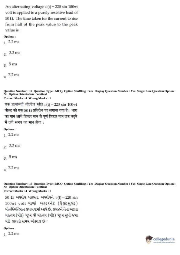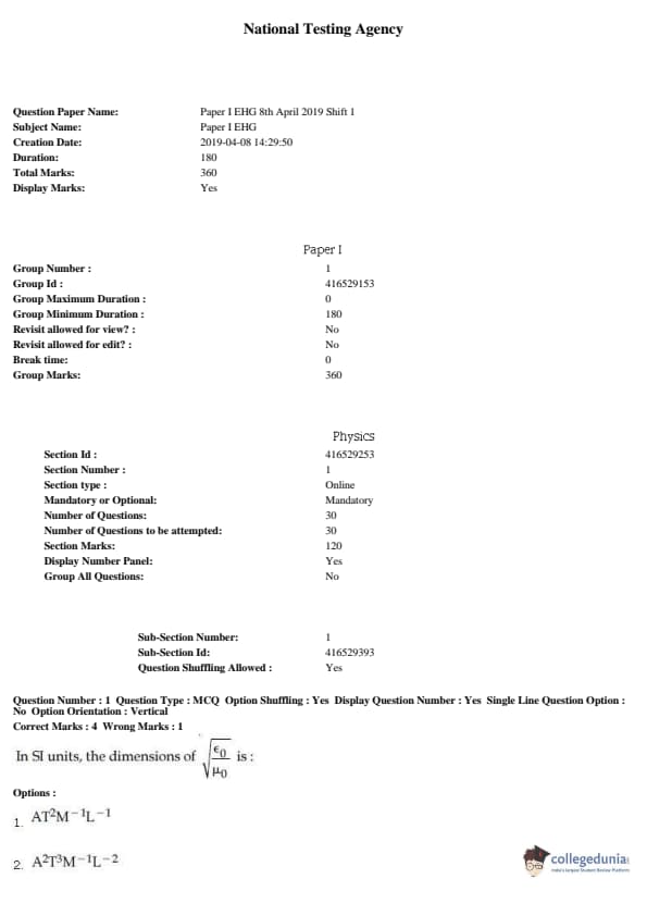 JEE Main 2019 B.E./B.Tech Question Paper- April 8(Forenoon)