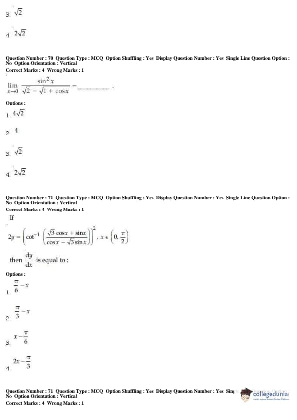 Candidates can solve the question papers of the previous year to analyze their performance levels. To enhance the accuracy level, candidates are advised to solve JEE Main Question Papers daily. JEE Main B.Arch year wise and subject wise question paper links with answer key PDFs are provided below: