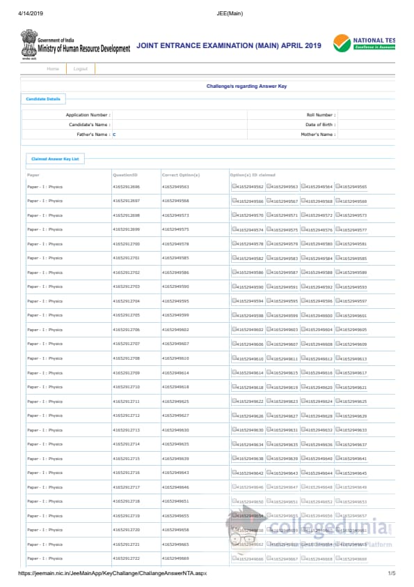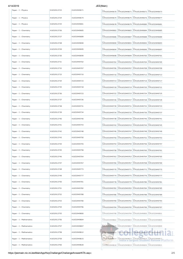 | JEE Main 2019 Question Paper | JEE Main 2019 Answer Key |