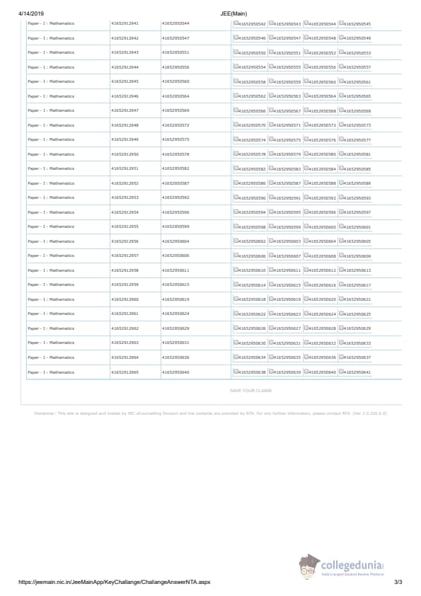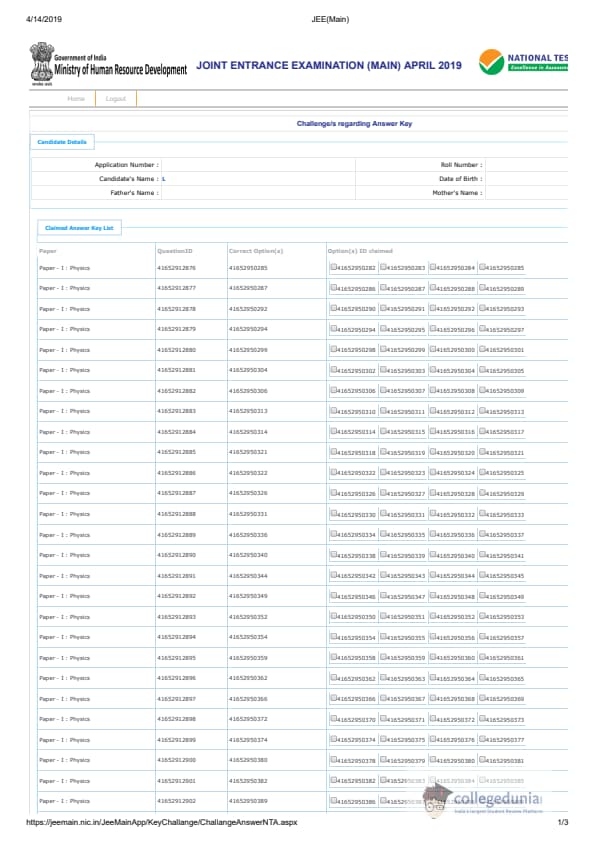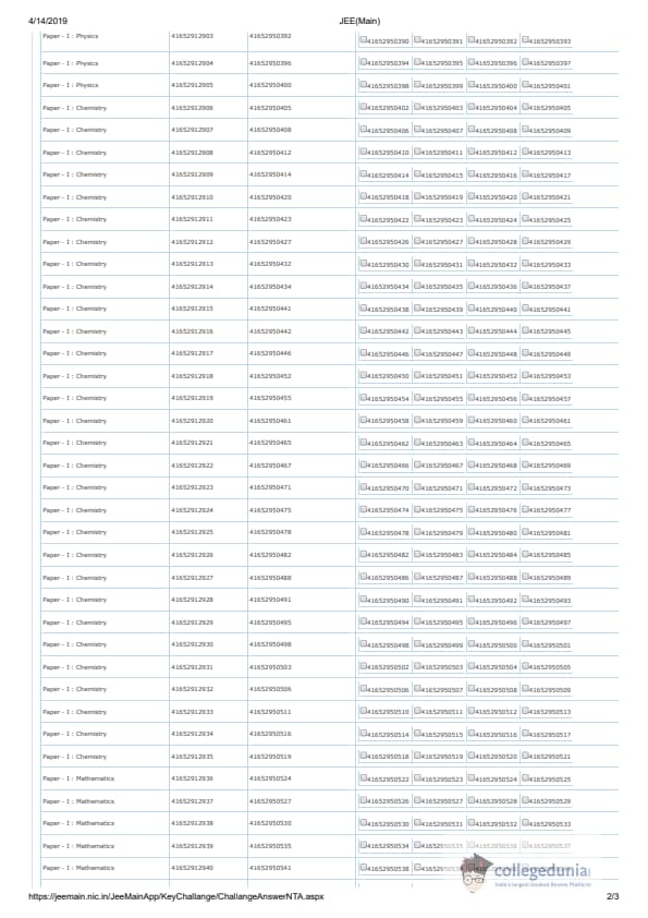 | JEE Main 2019 Question Paper | JEE Main 2019 Answer Key |