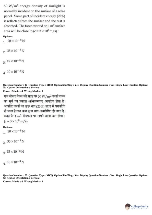 Students were supposed to be awarded with 4 marks for every correct answer. As per the determined negative marking scheme, 1 marks would be reduced for every incorrect answer.
