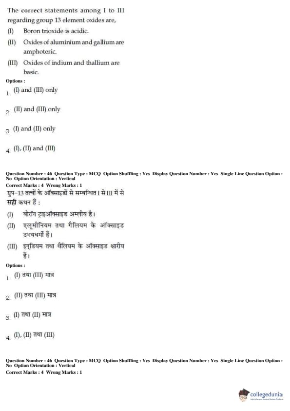 - The Chemistry section comprises many questions from Metallurgy and Basic Concepts of Organic Chemistry. Some of the previous year questions were also listed in the Chemistry section
