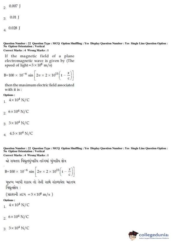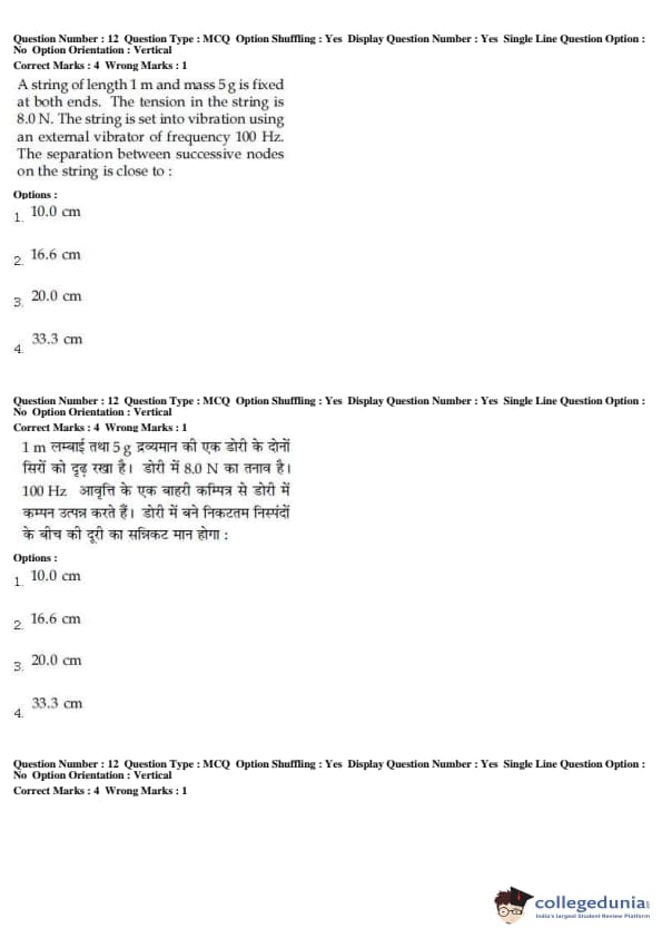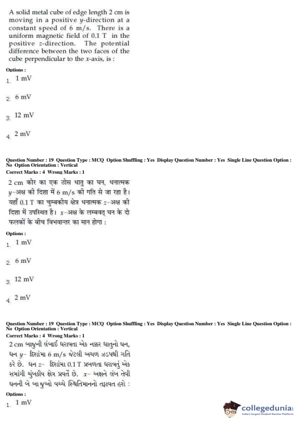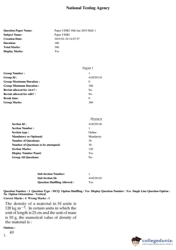 JEE Main 2019 B.E./B.Tech 2019 was conducted by NTA on 10 January 2019 in the Forenoon Session. Students were provided 180 minutes to solve a total of 90 questions related to Mathematics, Physics, and Chemistry. Each section holds 30 questions, each section carries 120 marks. The exam pattern and overall difficulty level was nearly the same as the previous slots. The Physics section emerged as the most difficult section in the paper, while Mathematics and Chemistry maintained moderate and easy level questions respectively.