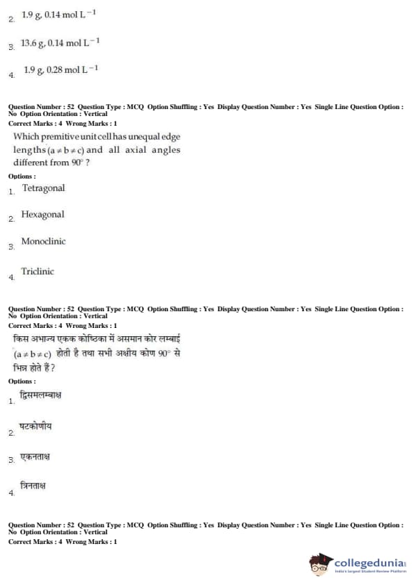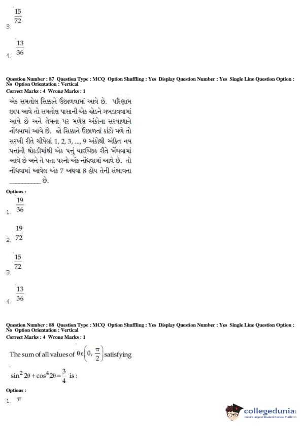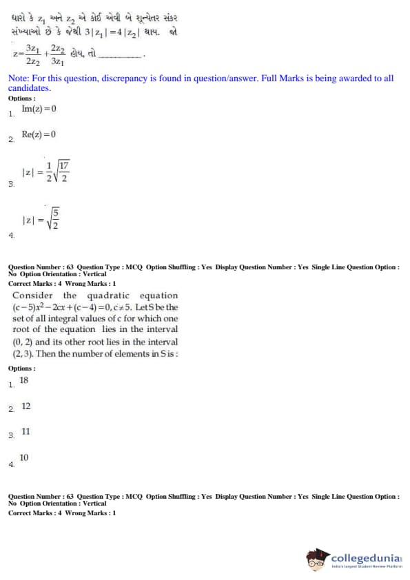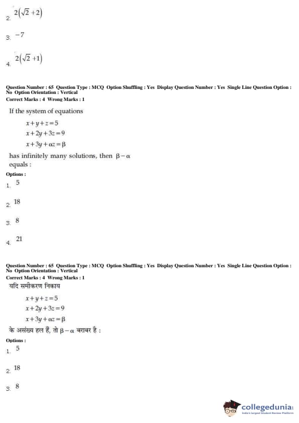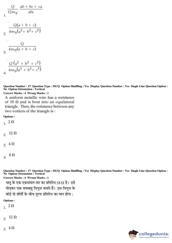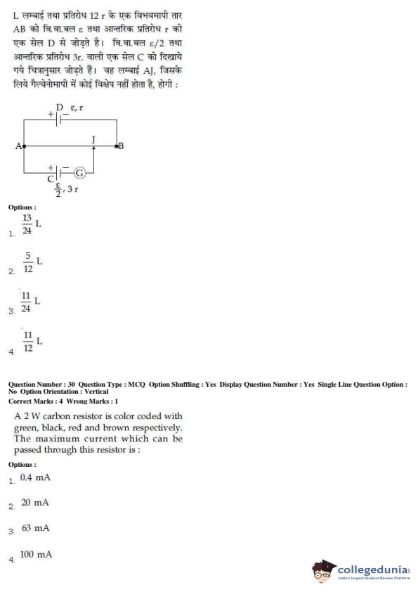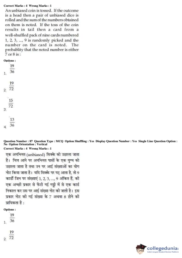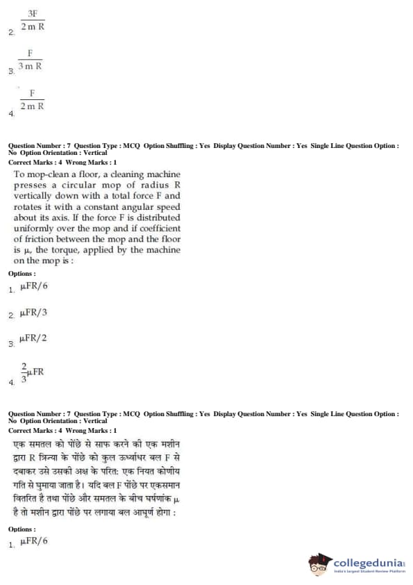 JEE Main 2019 B.E./B.Tech Question Paper- January 10 (Forenoon)