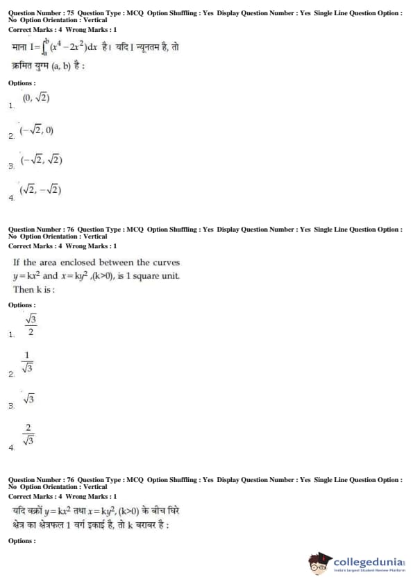 Candidates can solve the question papers of the previous year to analyze their performance levels. To enhance the accuracy level, candidates are advised to solve JEE Main Question Papers daily. JEE Main B.Arch year wise and subject wise question paper links with answer key PDFs are provided below: