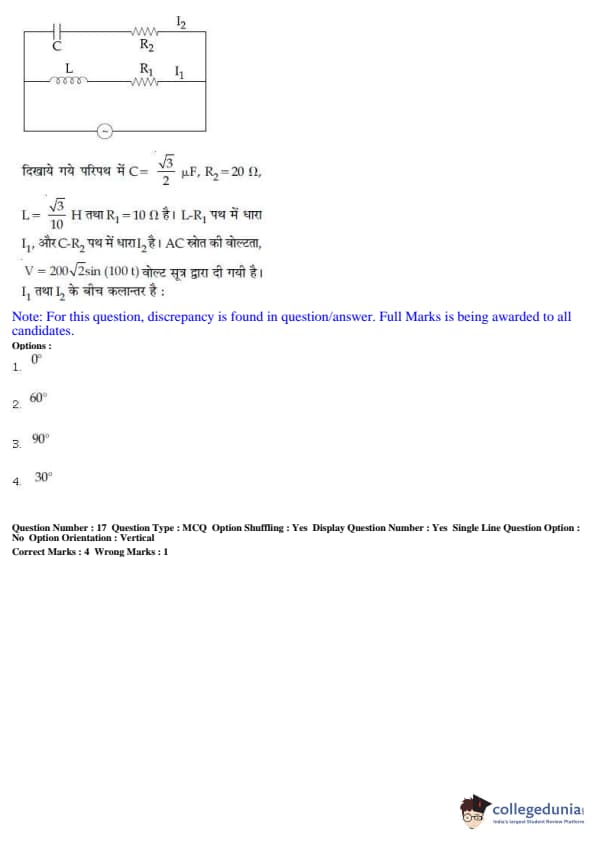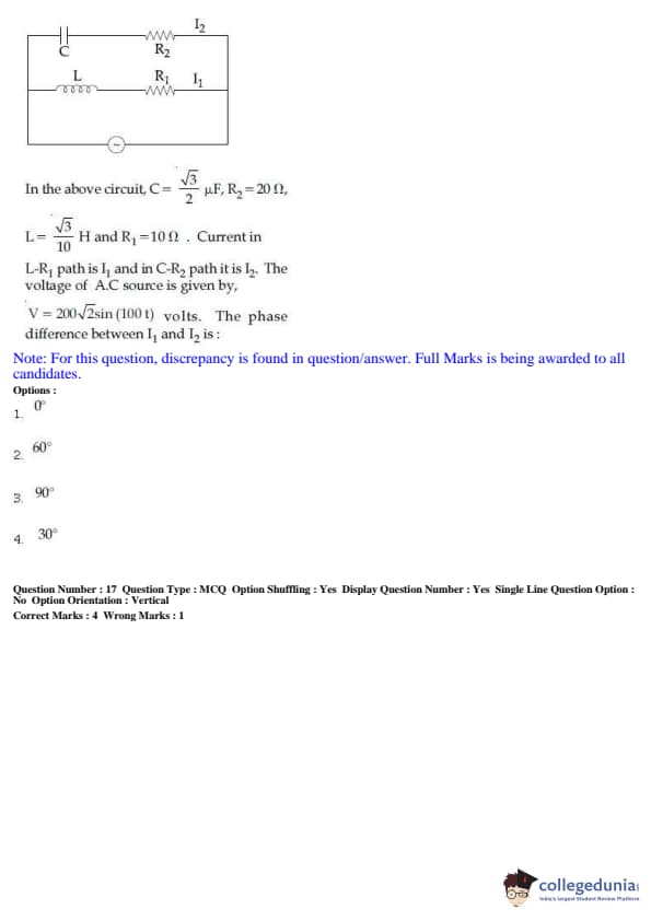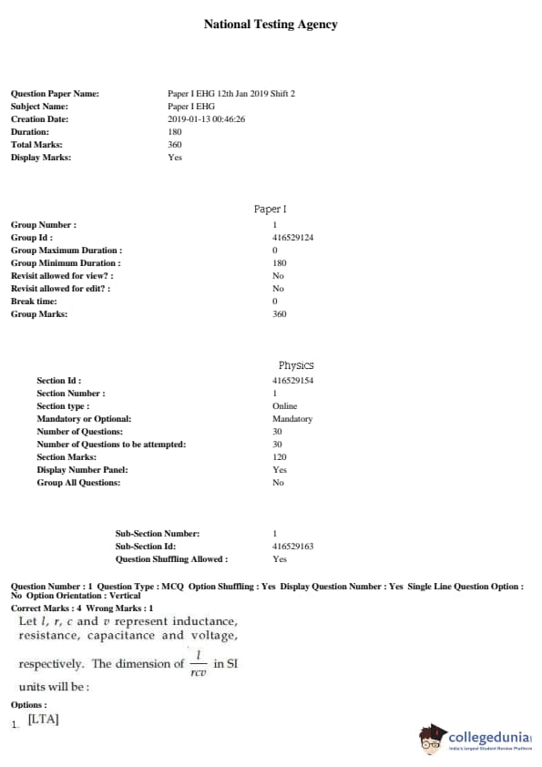 JEE Main 2019 B.E./B.Tech Question Paper- January 12 (Afternoon Session)