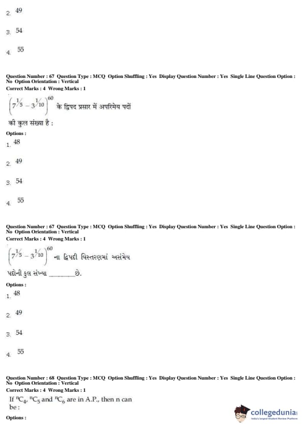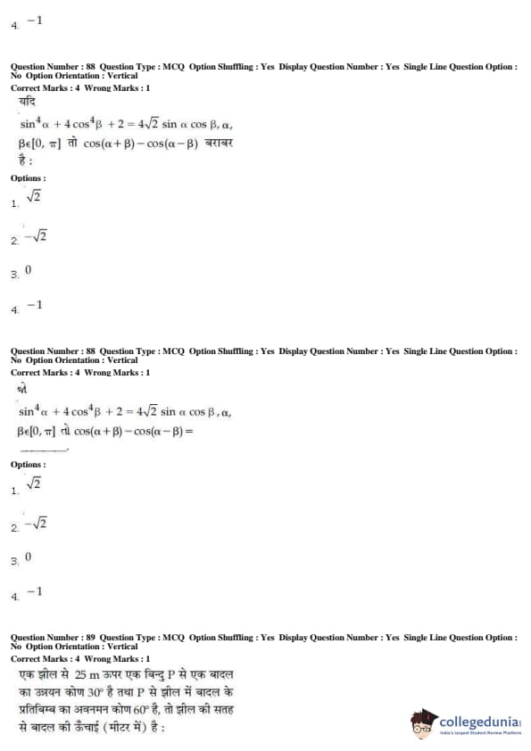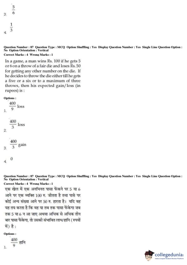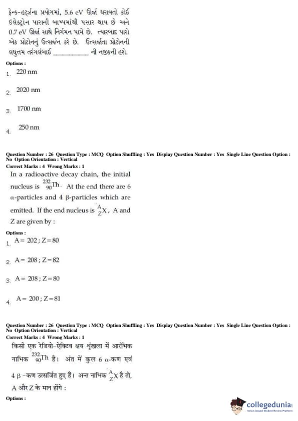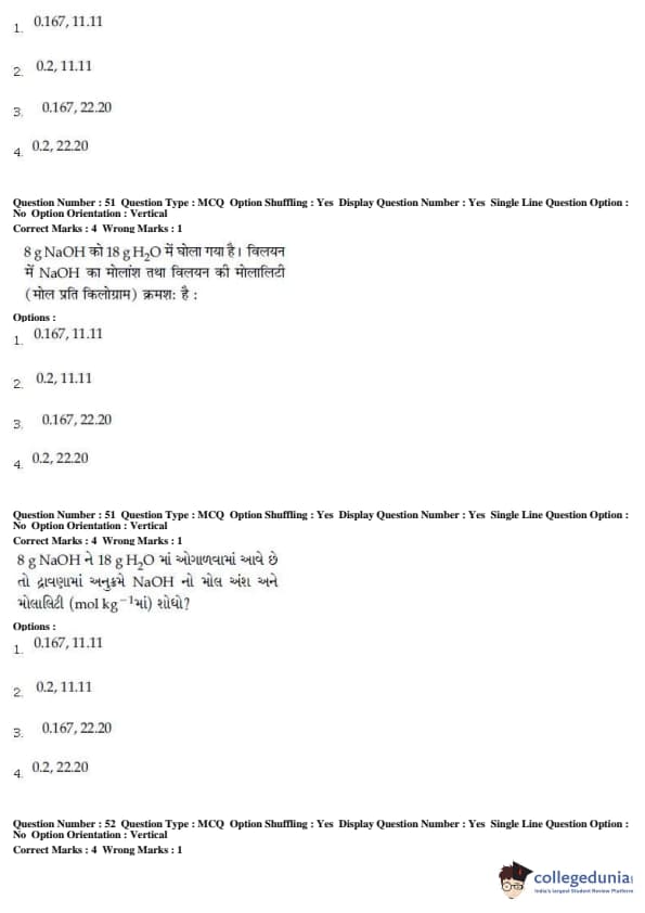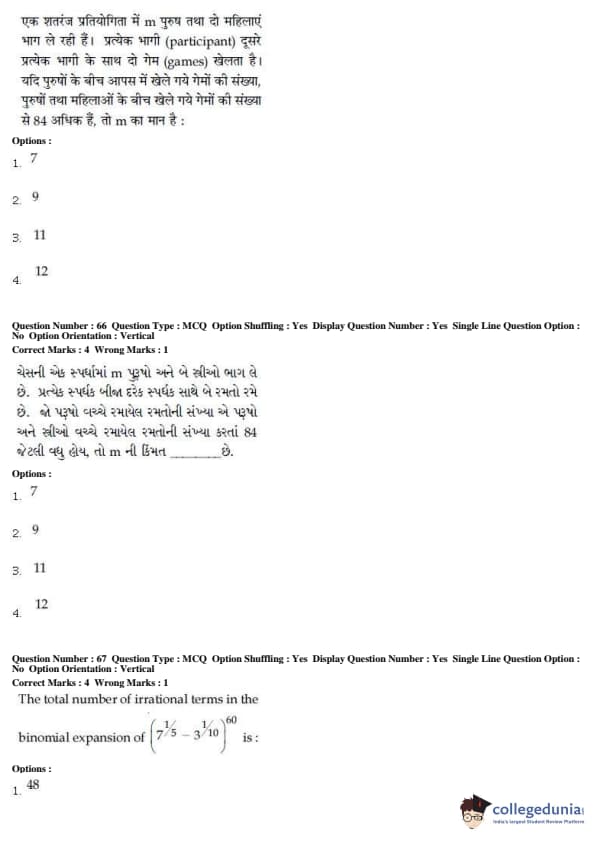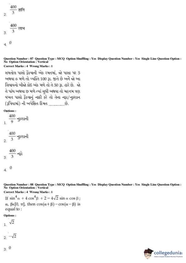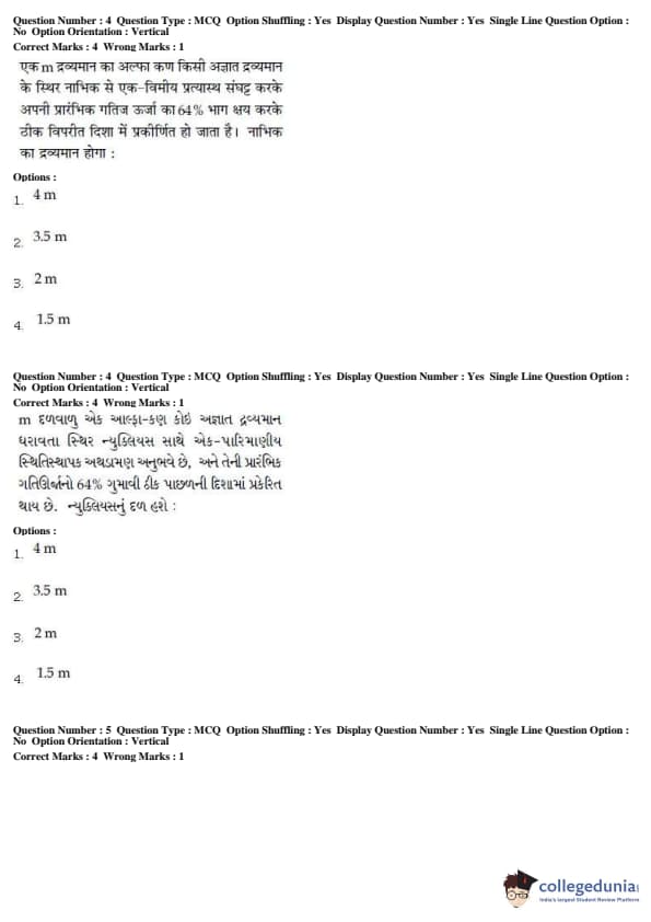 For every correct attempt 4 marks were rewarded, while 1 mark would be deducted for every incorrect attempt.