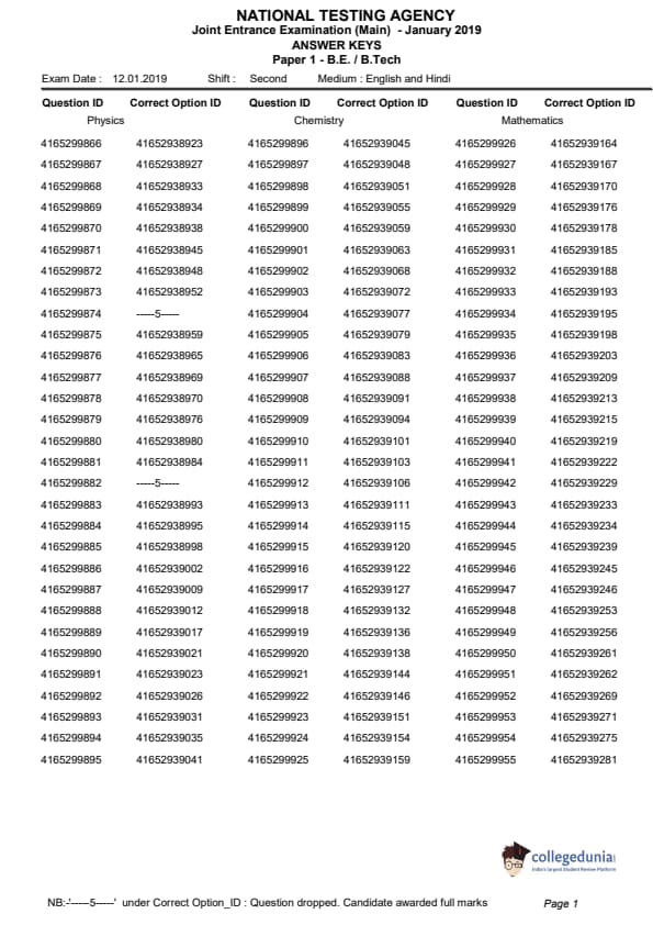 | JEE Main 2019 Question Paper | JEE Main 2019 Answer Key |