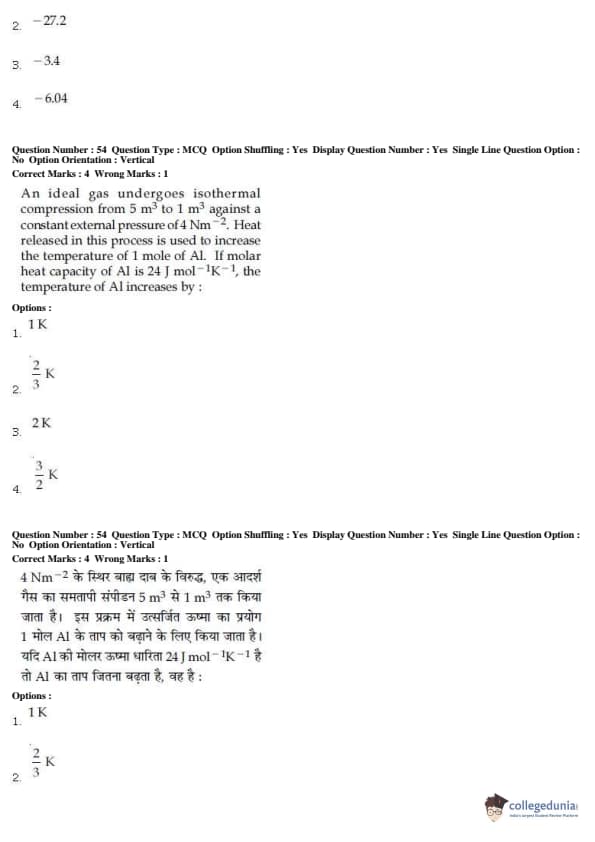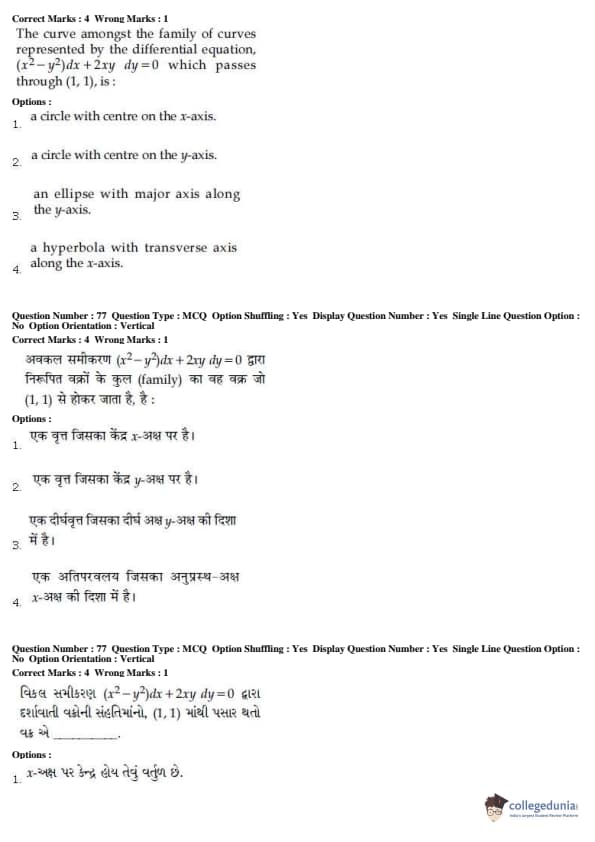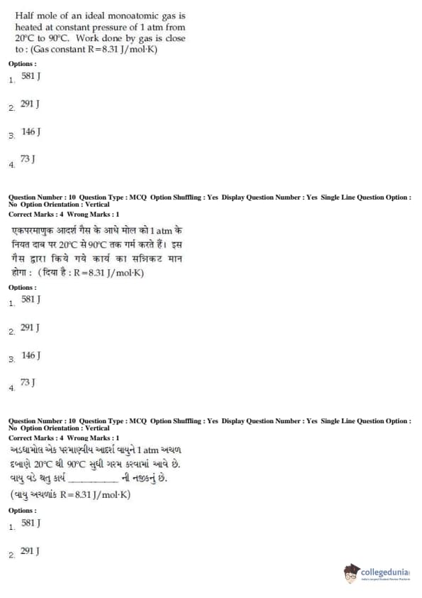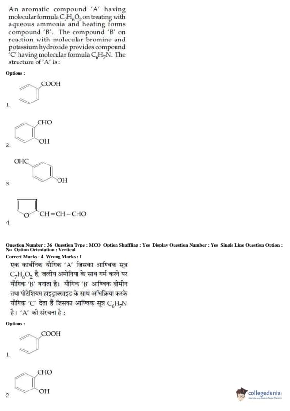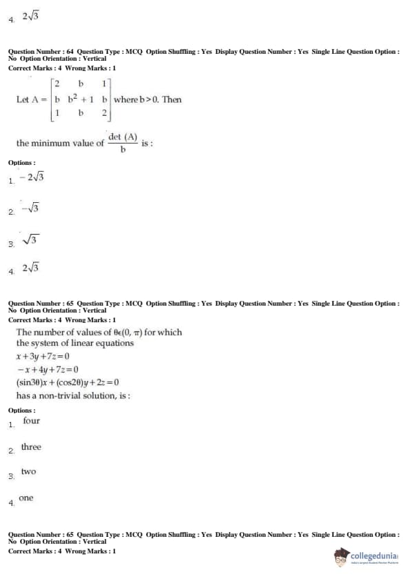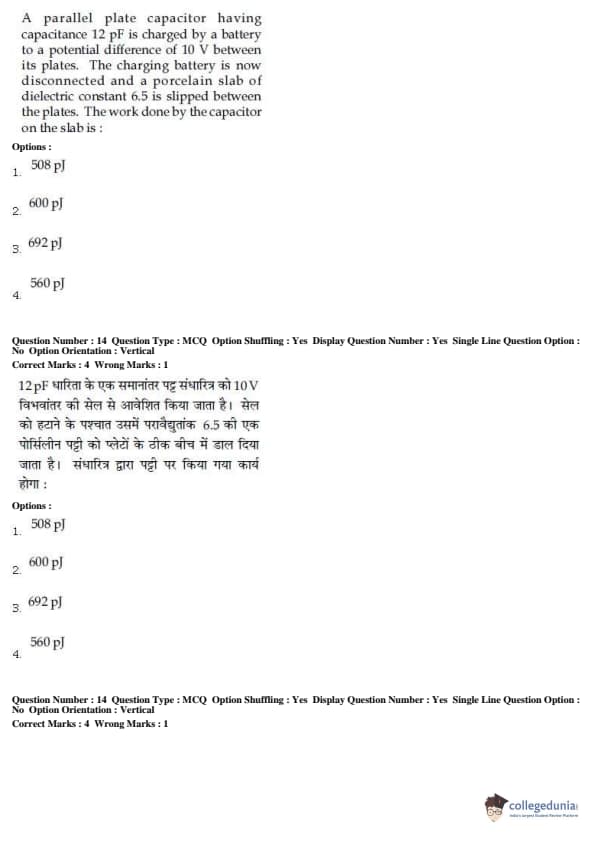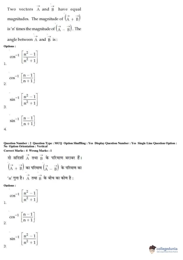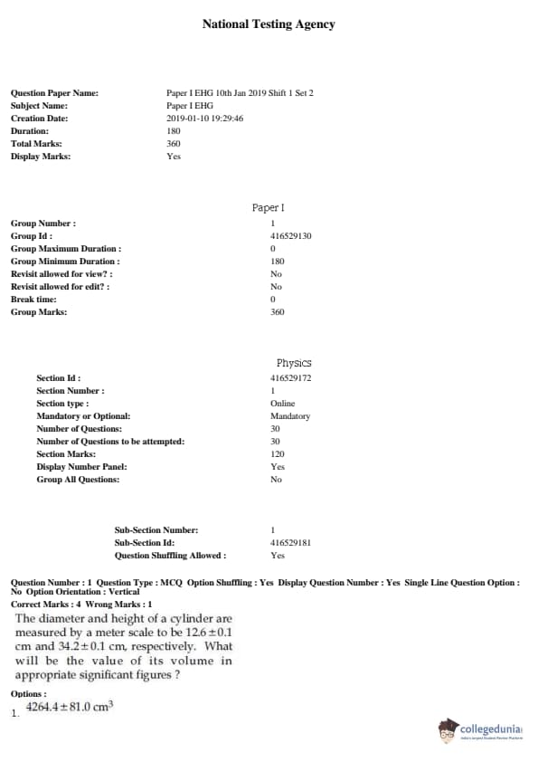 JEE Main 2019 B.E./B.Tech Question Paper- January 10, 2019- Afternoon Session)
