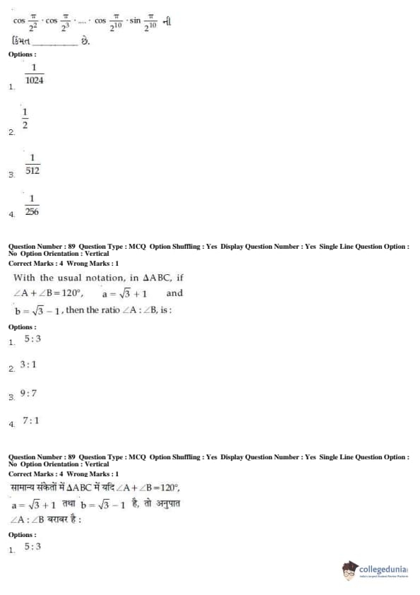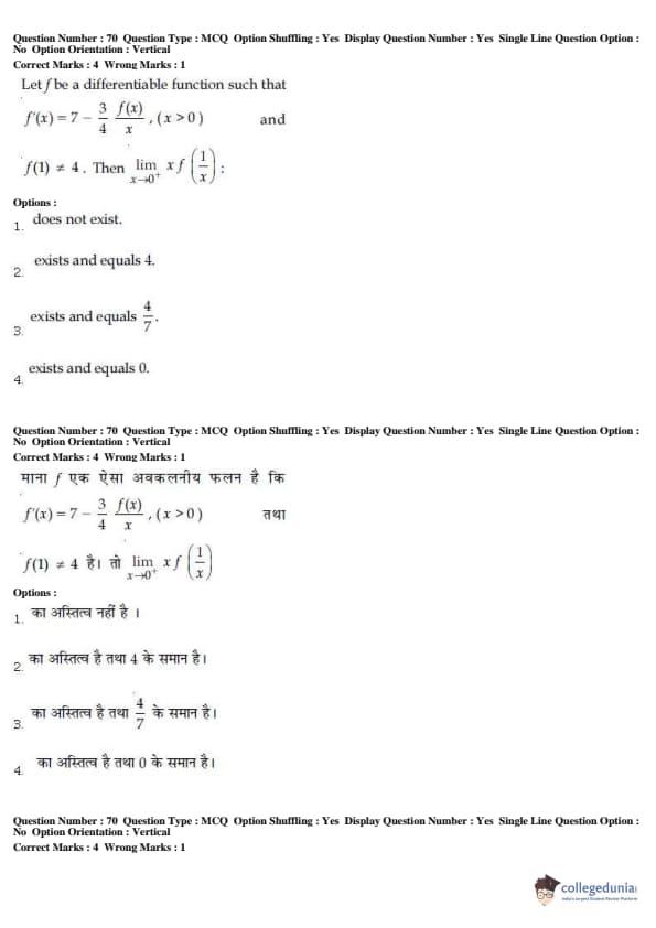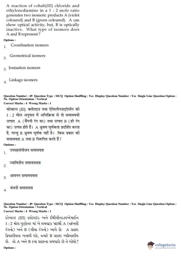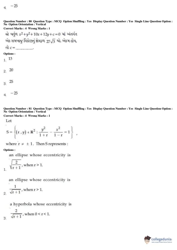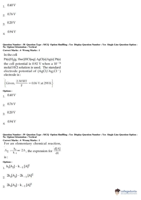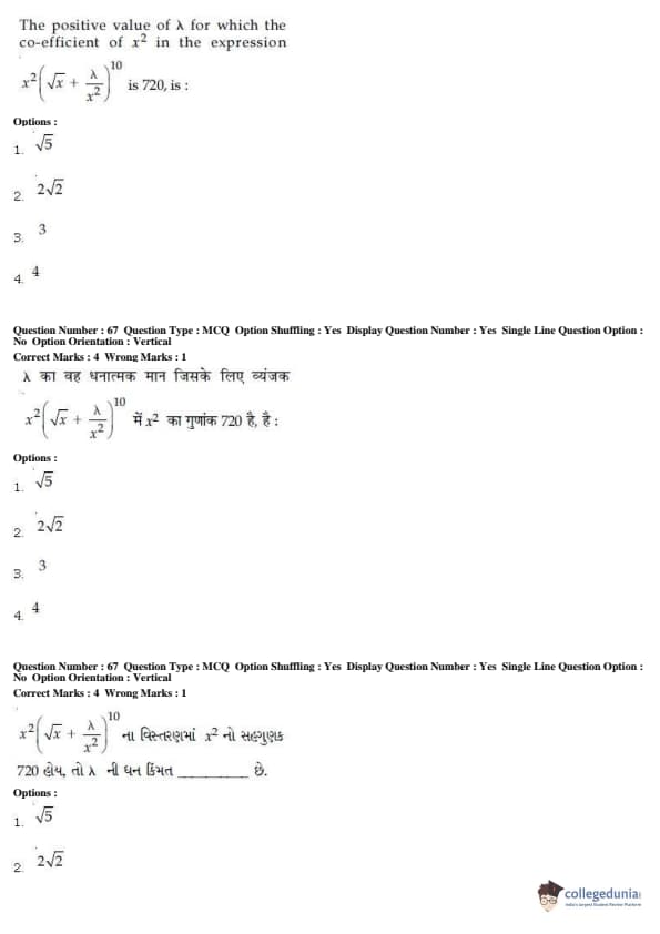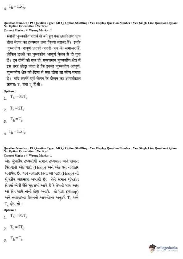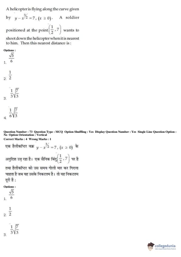 JEE Main 2019 B.E./B.Tech Question Paper- January 10, 2019- Afternoon Session)