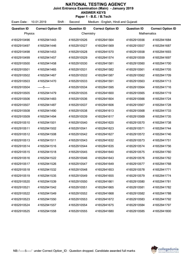 | JEE Main 2019 Question Paper | JEE Main 2019 Answer Key |