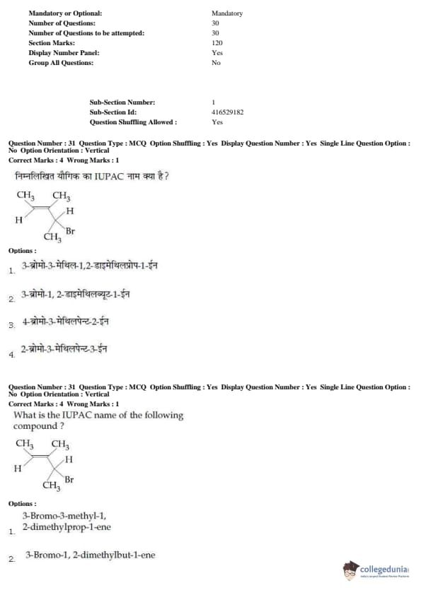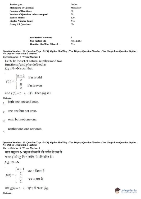 JEE Main 2019 B.E./B.Tech Marking Scheme