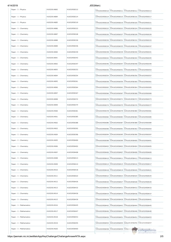 | JEE Main 2019 Question Paper | JEE Main 2019 Answer Key |