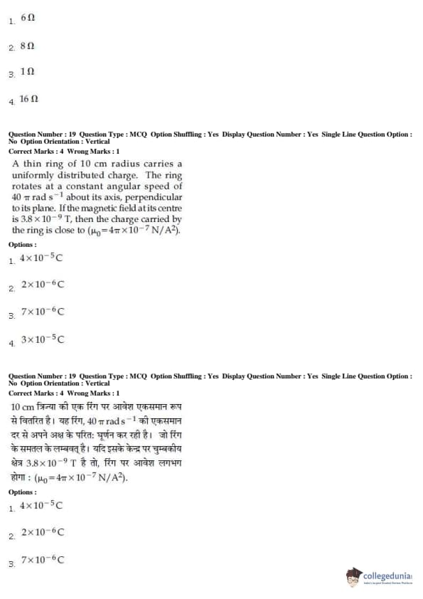 JEE Main 2019 B.E./B.Tech Question Paper- April 12(Forenoon)