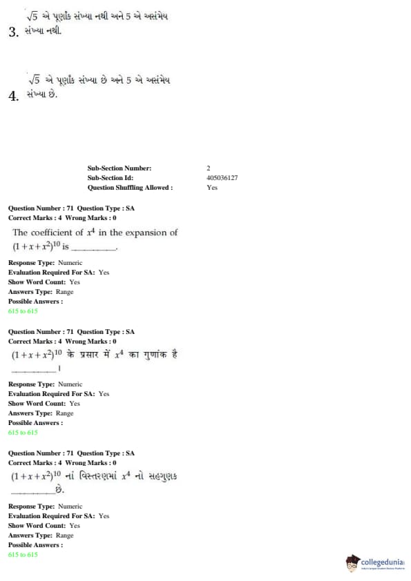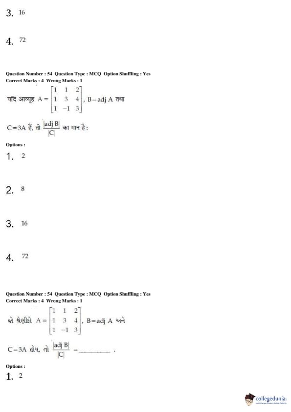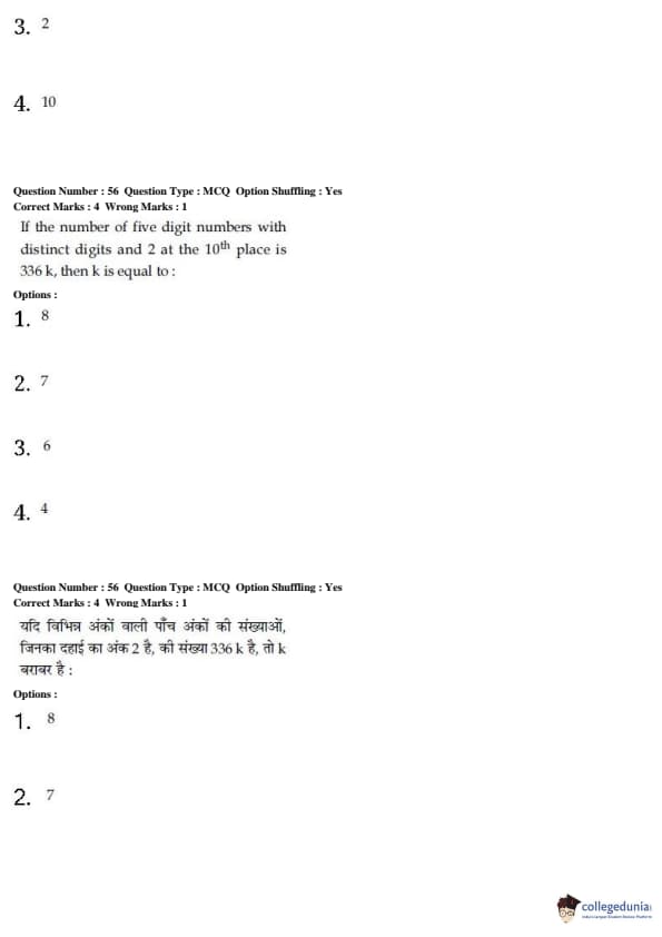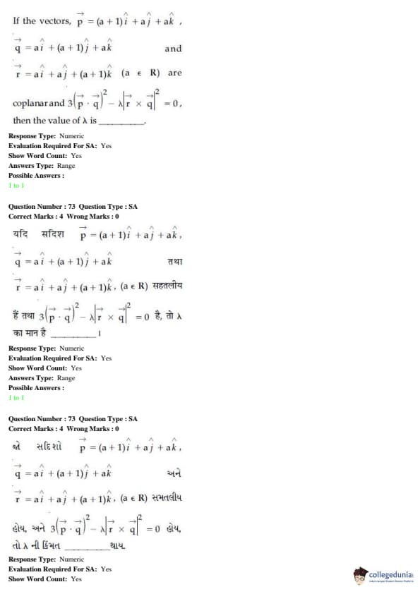 - Matrix & Determinants, and vectors had 2 Questions each in the section.