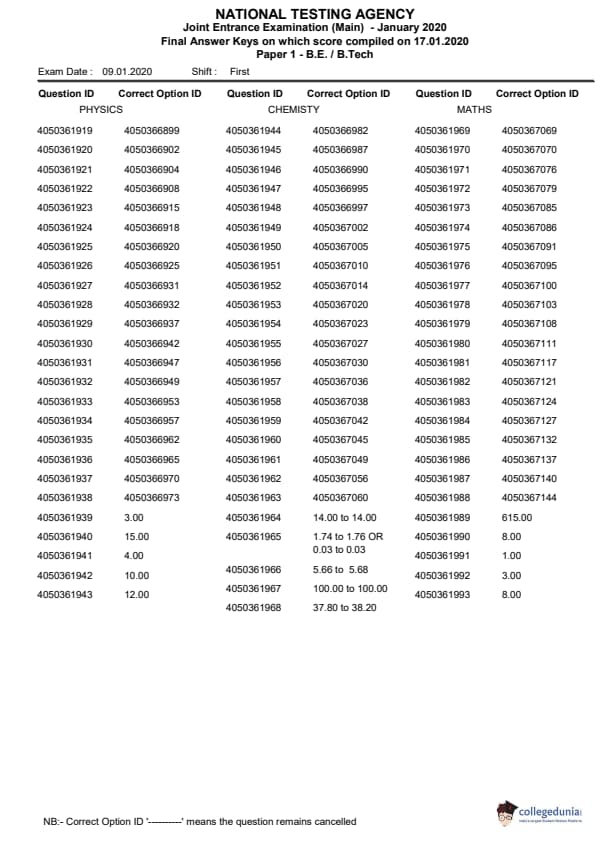 | JEE MAIN 2020 Question Paper | JEE MAIN 2020 Answer Key |