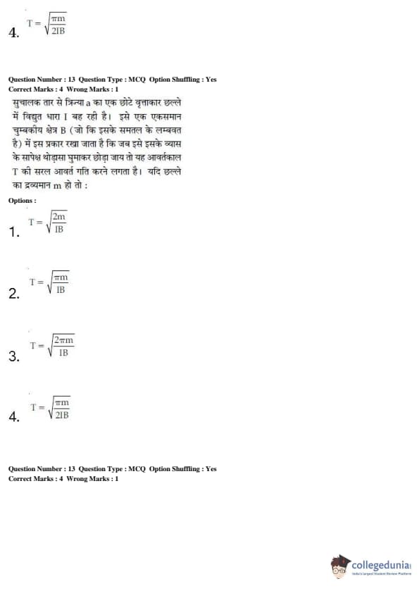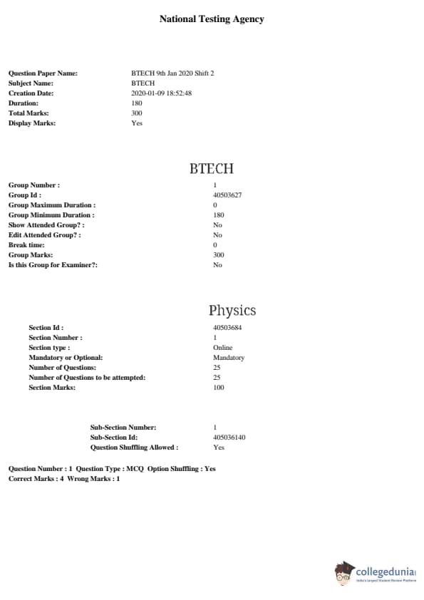 JEE Main B.E./B.Tech Question Paper for January 9, 2020 Shift 2 is available below to download. The paper was rated to be average in terms of difficulty by the test takers.