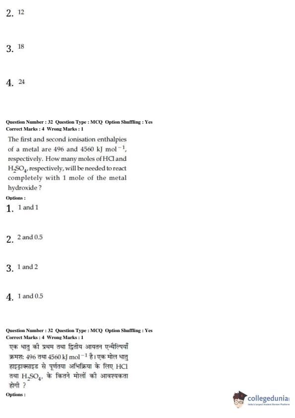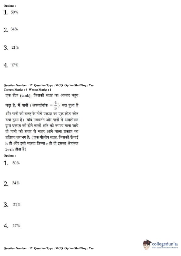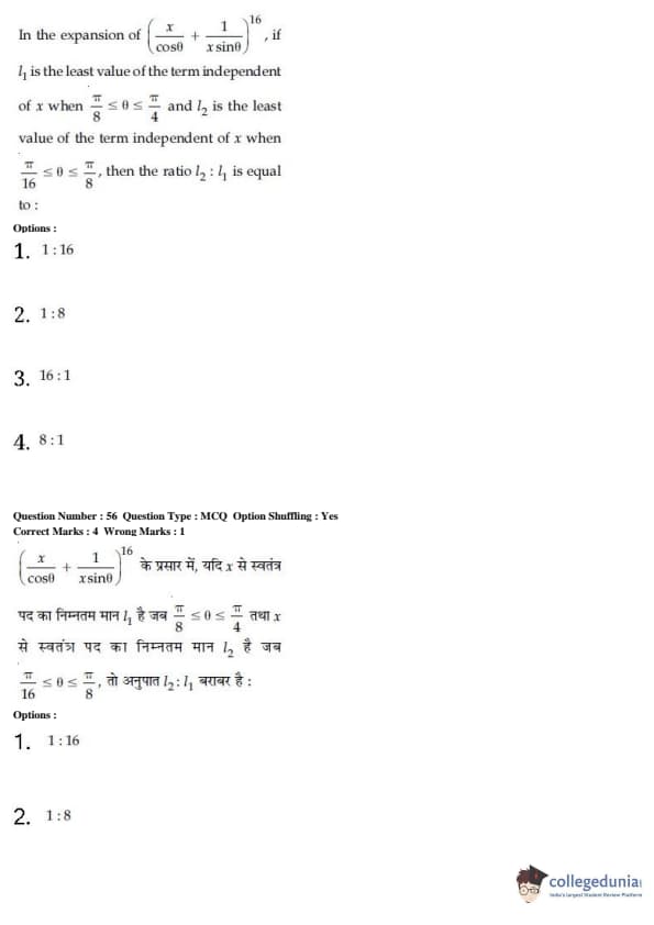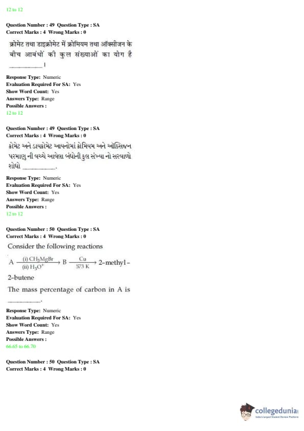 - Around 44% weightage was assigned to class XI topics in the paper, the remaining 56% weightage was assigned to class XII topics.
