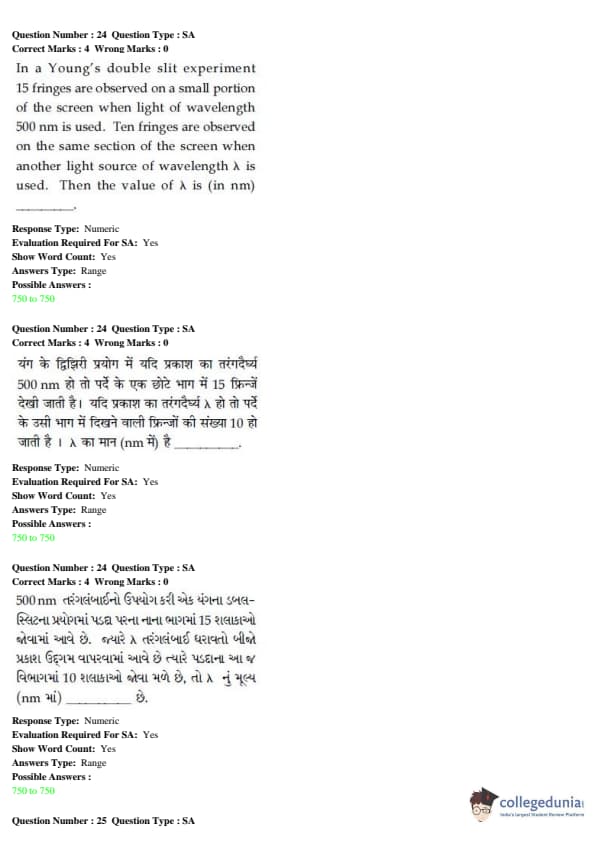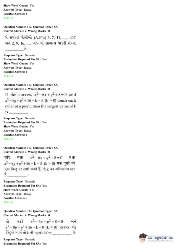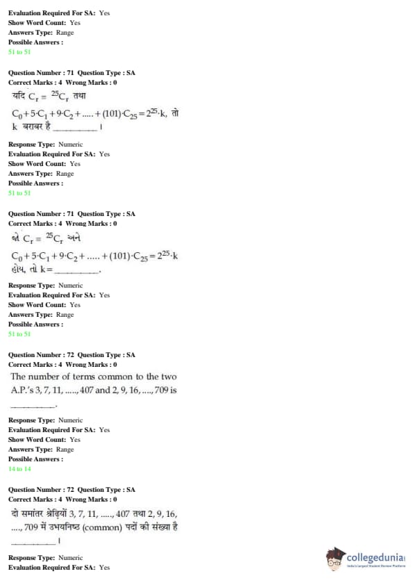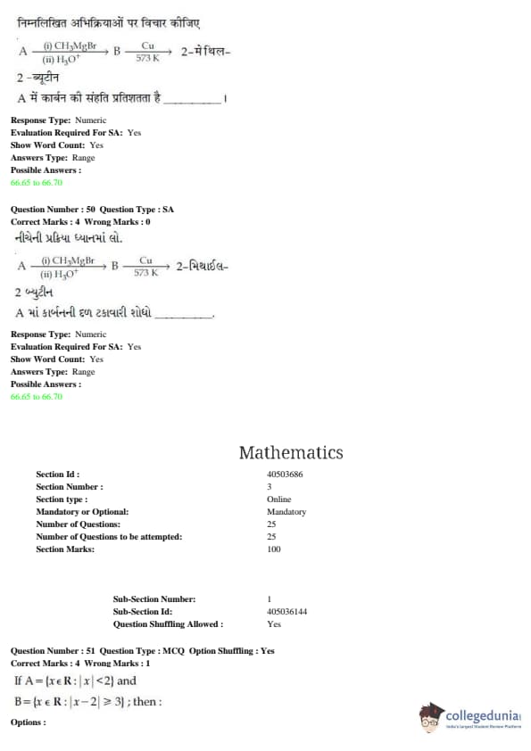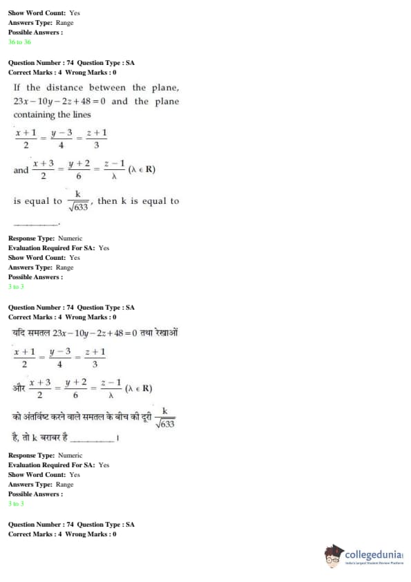 - Following the revised exam pattern, each section of the paper contained 5 Numerical Answer Type Questions. Candidates were required to enter numbers as the answer to these types of questions. Check JEE Main Exam Pattern