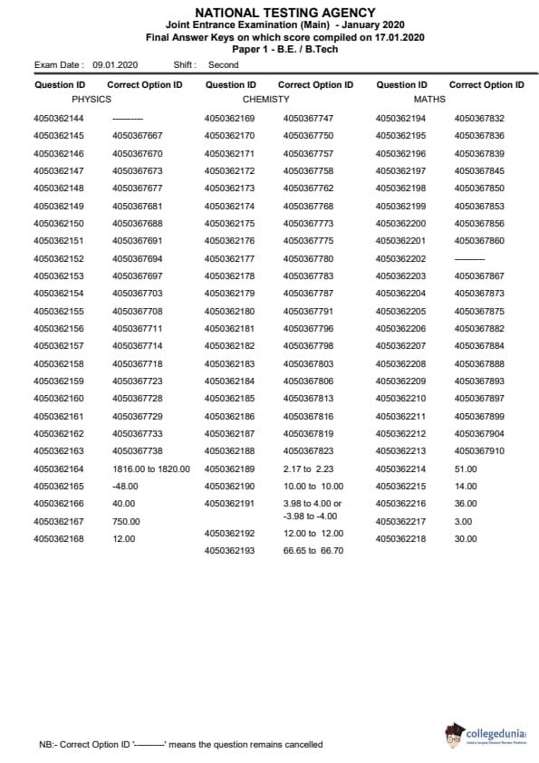JEE Main 2022 aspirants can download the question paper pdf along with its answer key pdf for January 9, 2020, B.Tech Shift 2 from the links provided below.