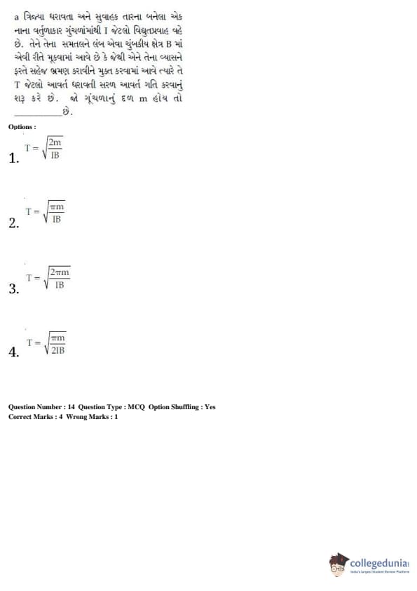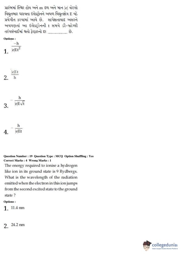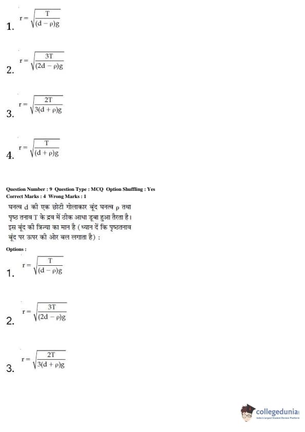 JEE Main B.E./B.Tech Question Paper- January 9, 2020 Shift 2