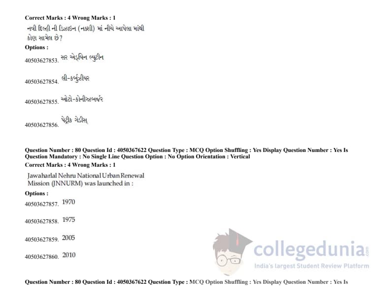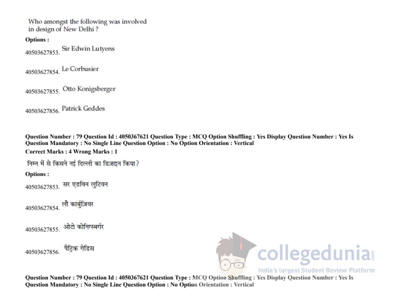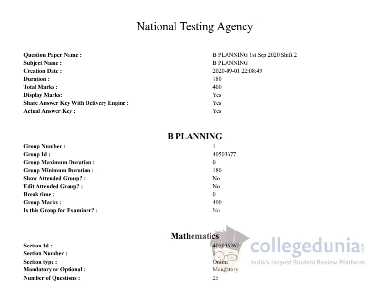 JEE Main B.Planning Question Paper with Answer Key PDF- September 1, 2020 Afternon Session