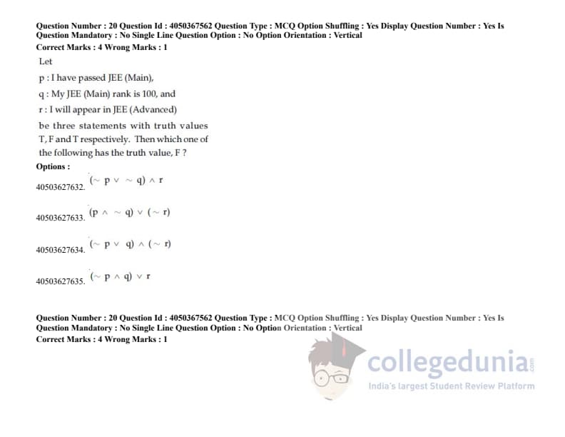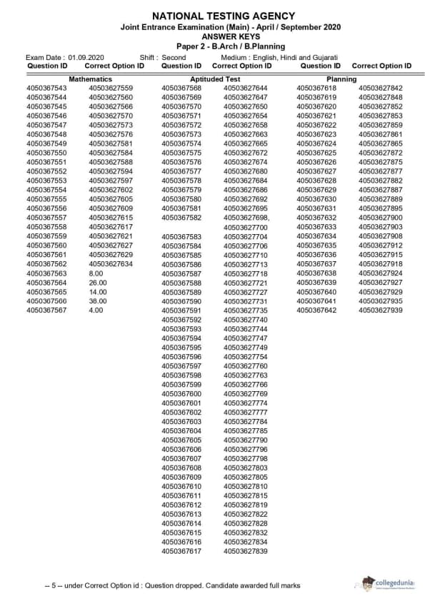 JEE Main 2020 Question paper with Answer key PDF Conducted on September 1 is available for download. The exam was successfully organized by National Testing Agency (NTA). In terms of difficulty level, B.Planning was of Moderate to difficult level. The question paper comprised a total of 77 questions.