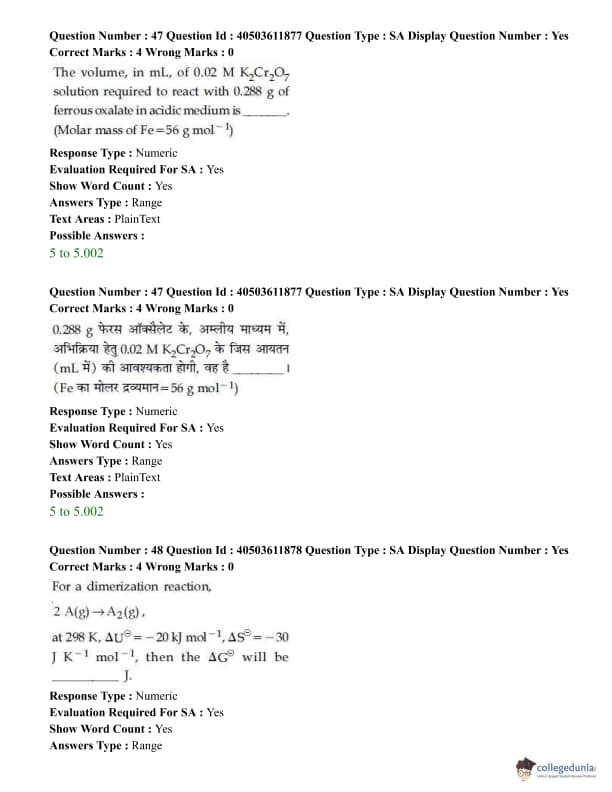 - The chemistry section had more questions from Inorganic chemistry than Organic.