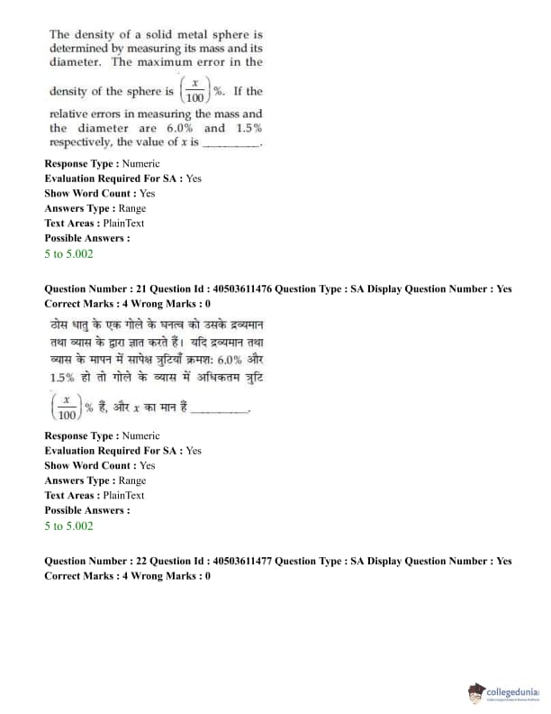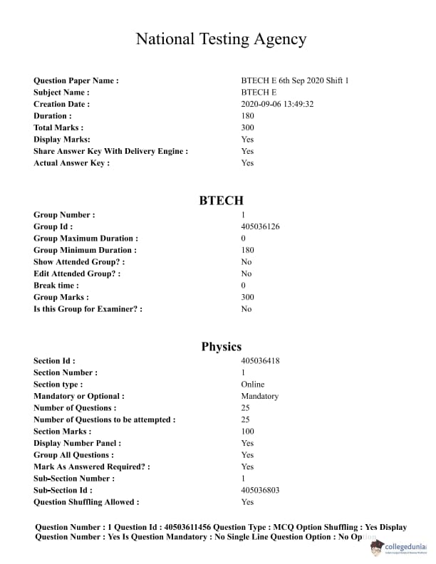 JEE Main B.E./B.Tech Question Paper- September 6, 2020 (Morning Session)