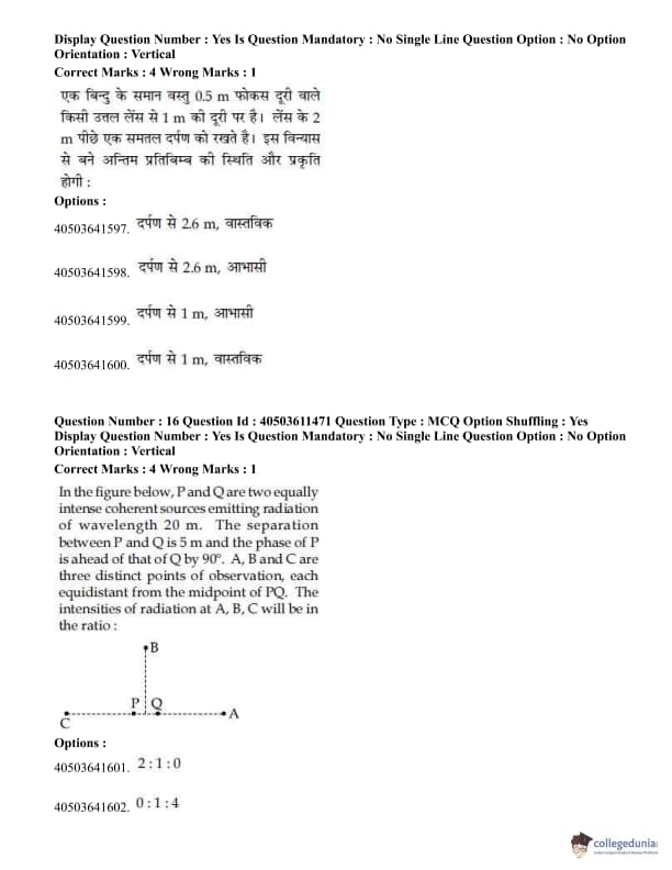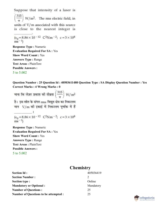 - Questions from Optics, Modern Physics, Electrostatics and Magnetism, EMI and thermodynamics were asked in physics.