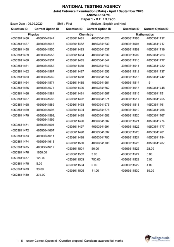 | JEE MAIN 2020 Question Paper | JEE MAIN 2020 Answer Key |