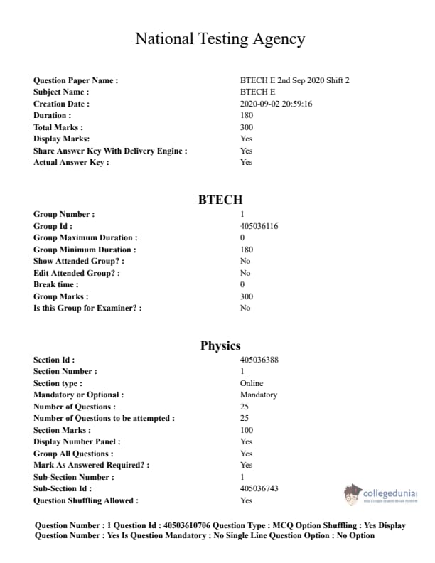 JEE Main B.E/B.Tech Question Paper- September 2, 2020 Afternoon Shift