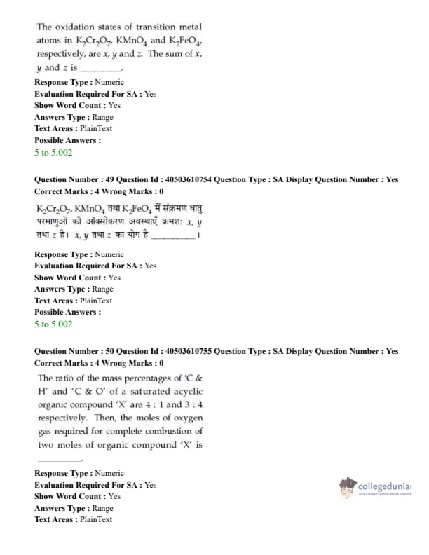 Candidates can solve the question papers of the previous year to analyze their performance levels. To enhance the accuracy level, candidates are advised to solve JEE Main Question Papers daily.JEE Main B.E/ B.Tech year wise and subject wise question paper links with answer key PDFs are provided below: