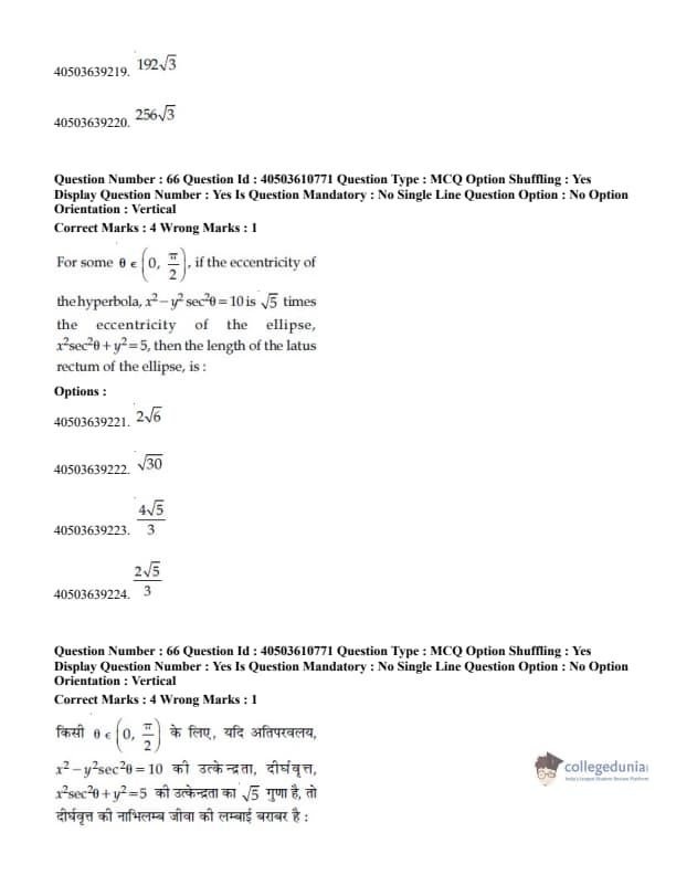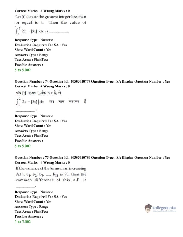 JEE Main B.E/ B. Tech Question Paper with Answer Key PDFs