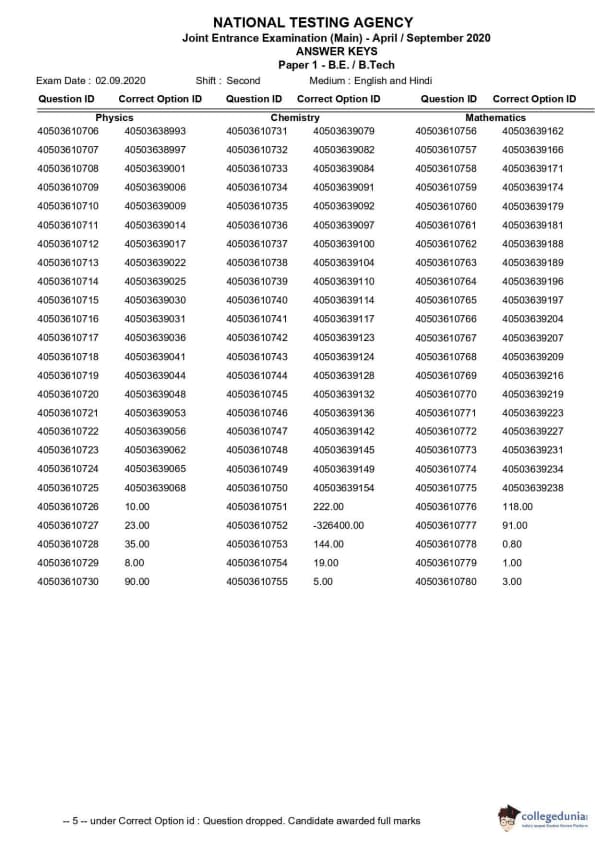 | JEE MAIN 2020 Question Paper | JEE MAIN 2020 Answer Key |