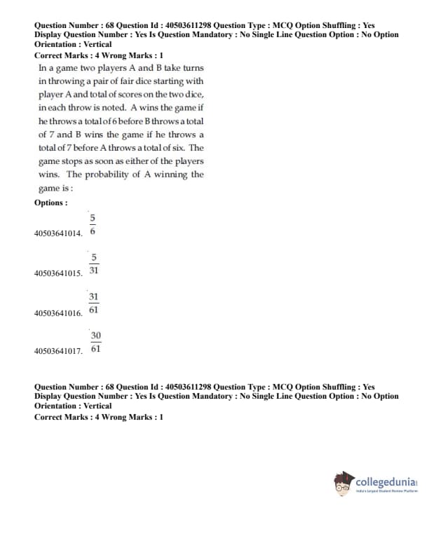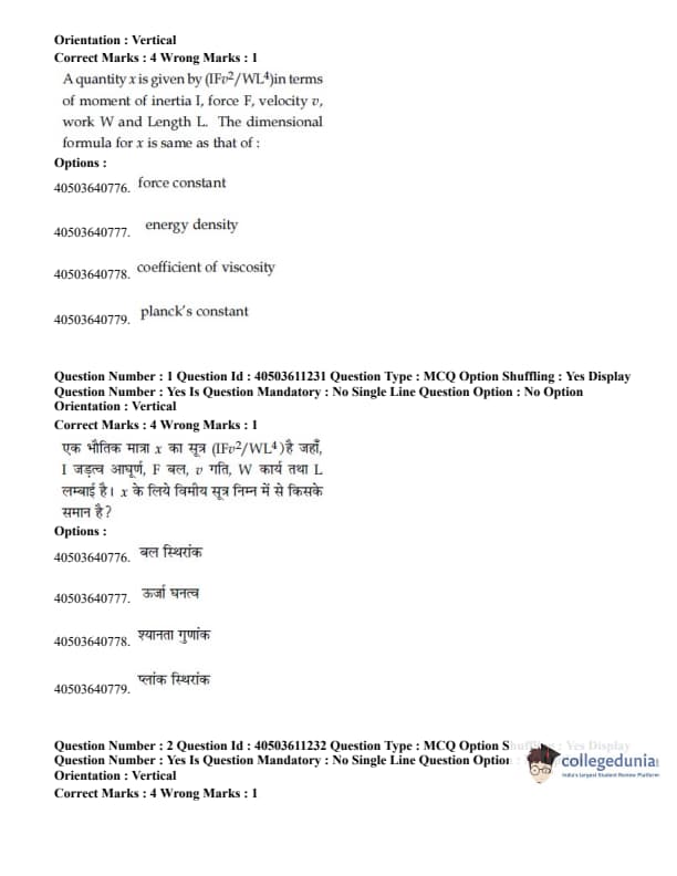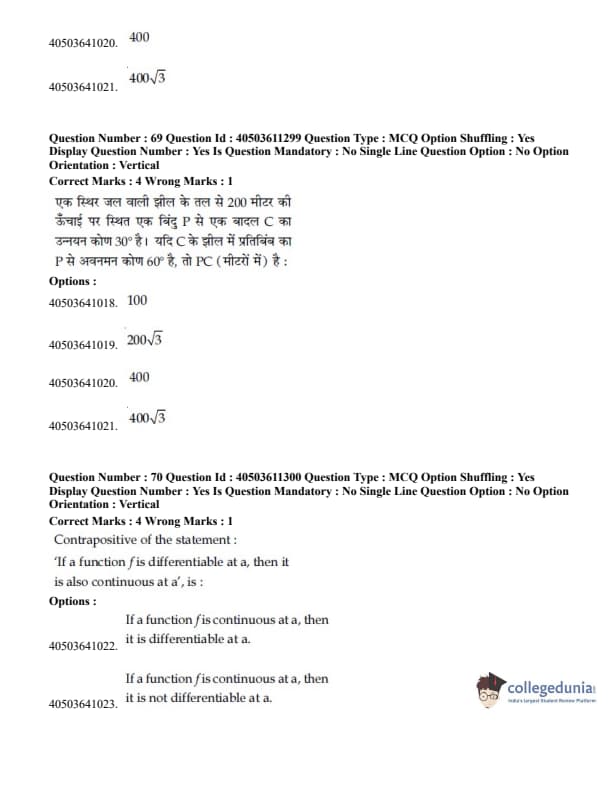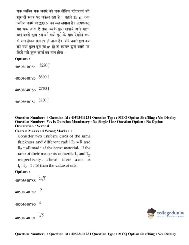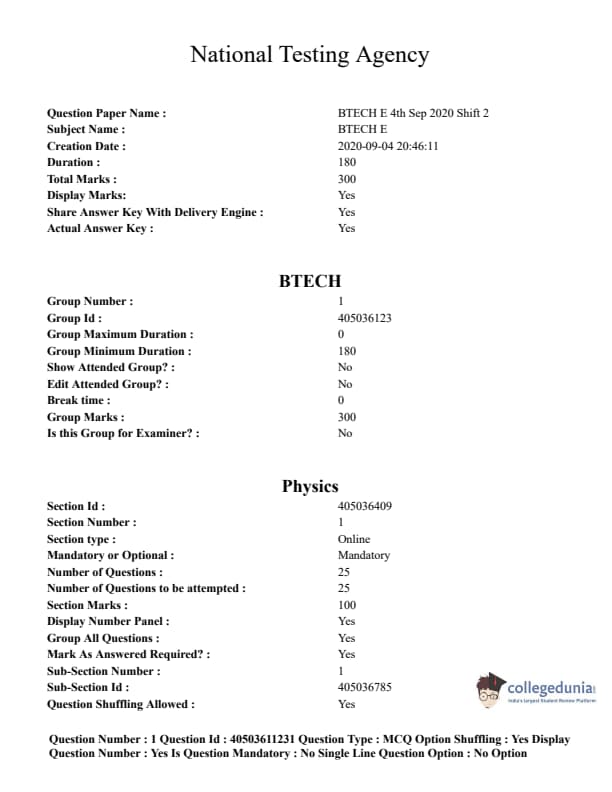 JEE Main B.E./B.Tech Question Paper- September 4, 2020 Afternoon