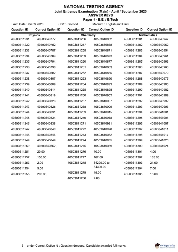 JEE Main B.E/ B.Tech 2020 Question Paper on September 4 was conducted with three core sections Physics, Chemistry, and Mathematics. In accordance with the overall difficulty level of JEE Main B.E/ B.Tech 2020 previous session question papers, the question paper for September 4, ranged from moderate to difficult. As per the section-wise difficulty level, Physics and Chemistry were moderate whereas the Maths paper was tough. JEE Main 2022 aspirants can download the question paper for September 4, 2020, along with its answer key from the links given below.