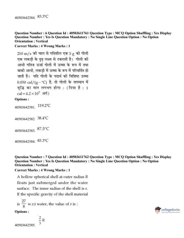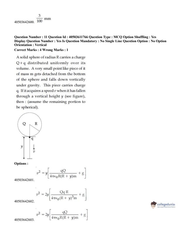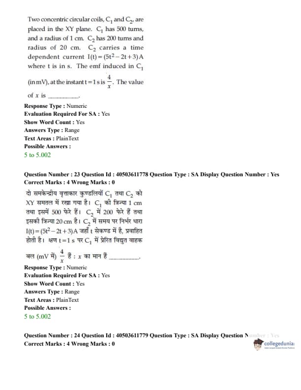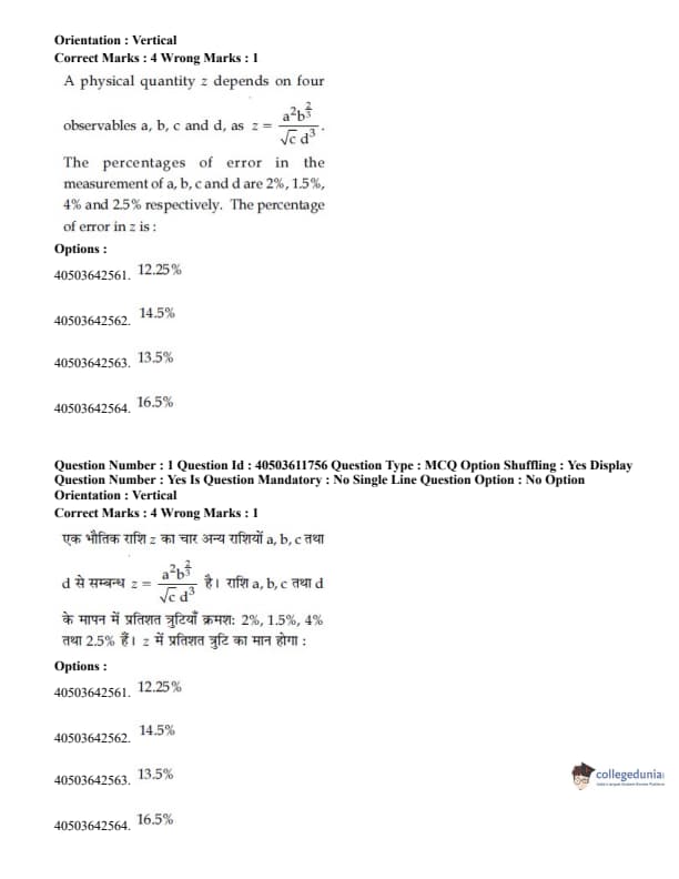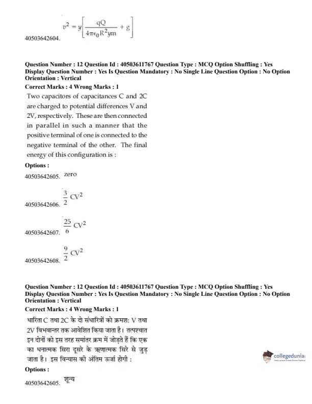 - 15 questions were asked from class XII topics and 10 Questions were asked from class XI topics. View JEE Main Physics syllabus