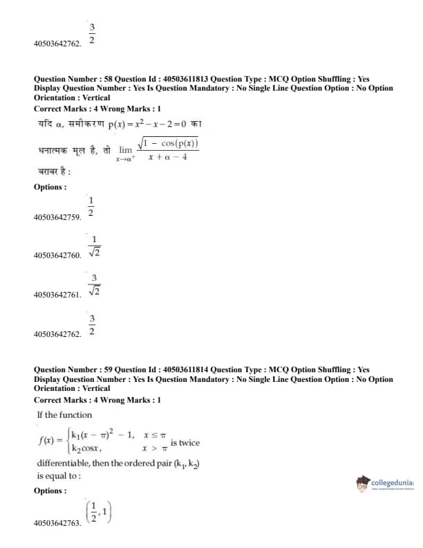- Differential Calculus (15%), Integral Calculus (12%), Coordinate Geometry (12%), and Trigonometry (10%) were the major contributing units in the paper