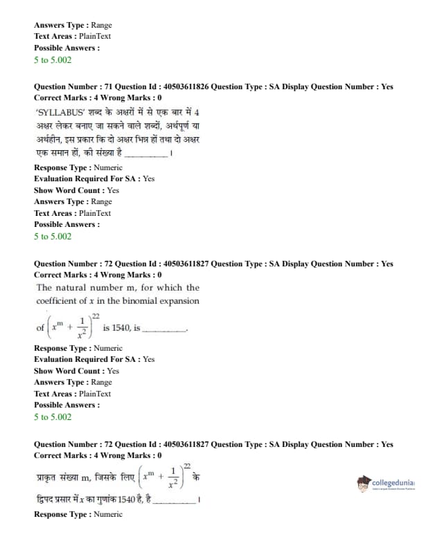 - Class XII topics had higher weightage in the syllabus. Around 14 questions were asked from class XII topics and 11 Questions were asked from class XI topics. View JEE Main Mathematics Syllabus