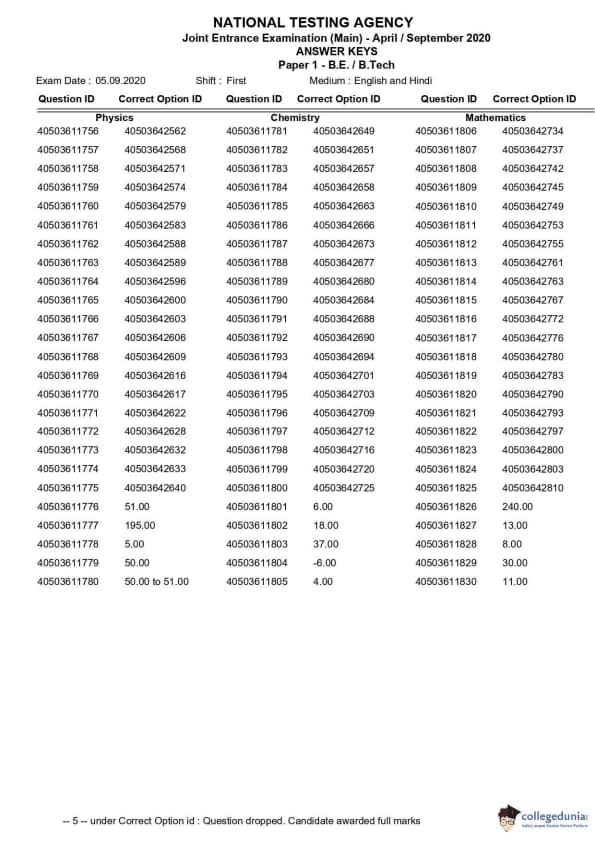 | JEE MAIN 2020 Question Paper | JEE MAIN 2020 Answer Key |