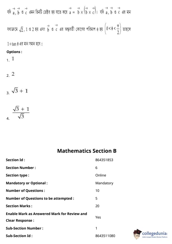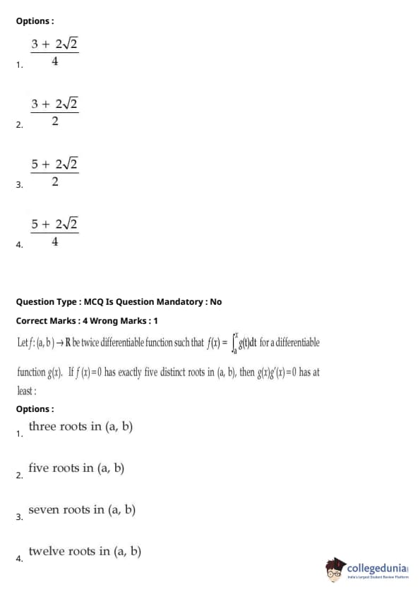 JEE Main 2021 B.E./ B.Tech প্রশ্নপত্র- 20 জুলাই, 2021- বিকালকে বিশেষজ্ঞ কোচিং প্রতিষ্ঠানগুলি মাঝারিভাবে কঠিন বলে রেট করেছে। পরীক্ষাটি ছিল জেইই মেইন 3য় সেশনের দ্বিতীয় পরীক্ষা। পরীক্ষার মাঝারি অসুবিধার জন্য একটি বড় অবদানকারী ফ্যাক্টর ছিল গণিত বিভাগ, যেটিতে জটিল এবং দীর্ঘ প্রশ্ন ছিল, বিশেষ করে সম্ভাব্যতা এবং ডিফারেনশিয়াল ক্যালকুলাস থেকে। অসুবিধার দিক থেকে দ্বিতীয়টি ছিল পদার্থবিদ্যা বিভাগ, যেখানে মেকানিক্স এবং আধুনিক পদার্থবিদ্যা থেকে উল্লেখযোগ্য পরিমাণ প্রশ্ন ছিল। জটিলতা এবং তত্ত্ব-ভিত্তিক প্রশ্নের ক্ষেত্রে রসায়ন বিভাগের অসুবিধা স্তরটি পদার্থবিদ্যা বিভাগের সমতুল্য ছিল; রসায়ন বিভাগে সবচেয়ে বড় অবদান ছিল জৈব রসায়ন (I এবং II)। JEE Main 2022-এর জন্য প্রস্তুতি নিচ্ছেন প্রার্থীরা , নিচে থেকে 20 জুলাই, 2021, বিকেলের সেশনের জন্য উত্তর কী পিডিএফ সহ প্রশ্নপত্র ডাউনলোড করতে পারেন: