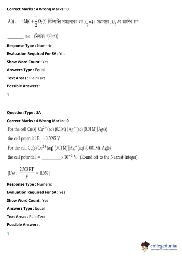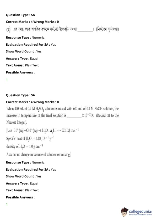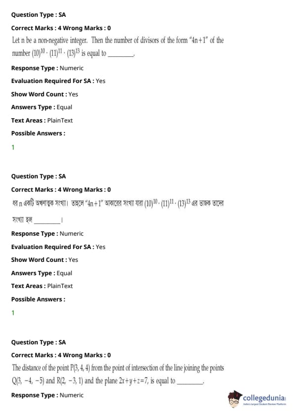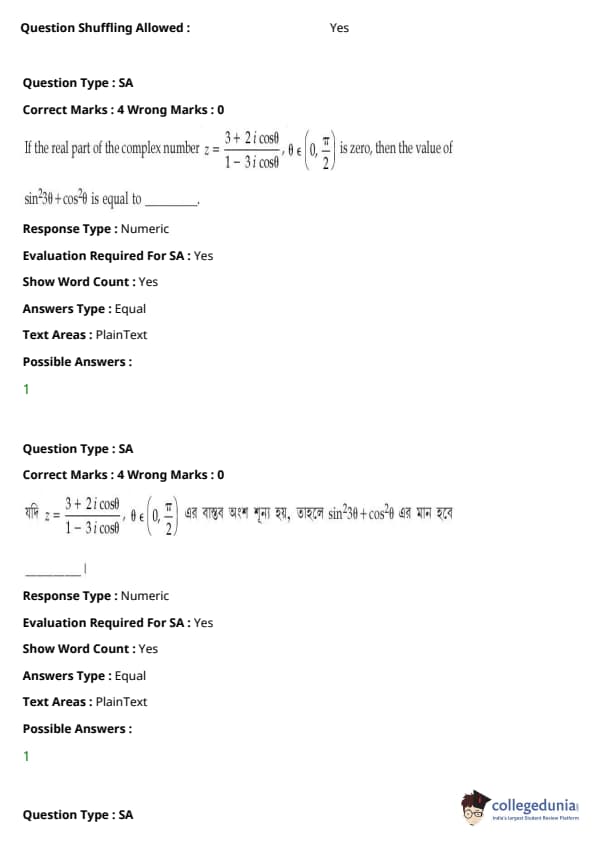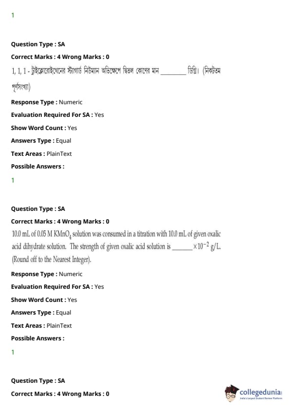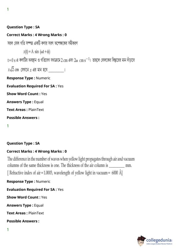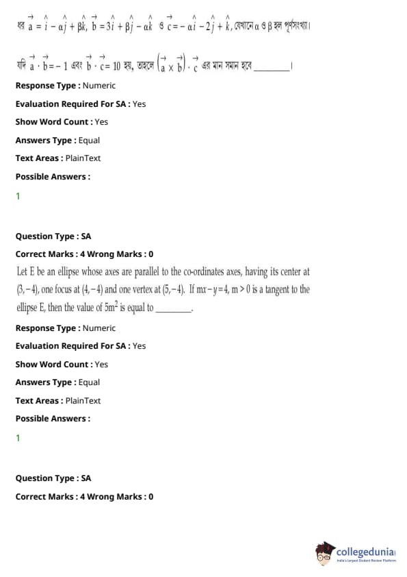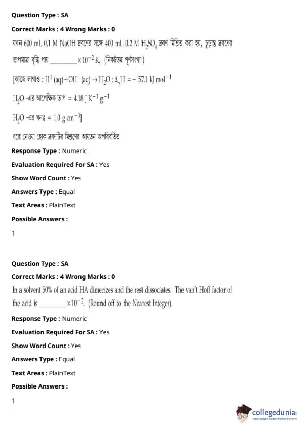 বিস্তারিত প্রশ্নপত্র বিশ্লেষণের জন্য, দেখুন-JEE Main প্রশ্নপত্র বিশ্লেষণ